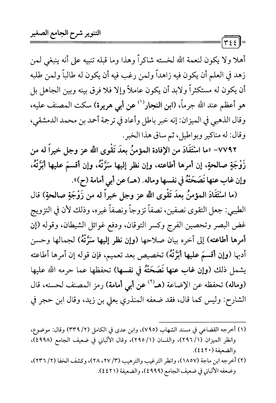 7792 - "ما اسْتَفَادَ من الإفادة المؤمنُ بعدَ تَقْوى الله عَزَّ وَجَلَّ خيراً له من زَوْجَةٍ صالحةٍ، إن أمرها أطاعته, وإن نظر إليها سَرَّتْهُ، وإن أقسمَ عليها أبرَّتْهُ, وإن غاب عنها نَصَحَتْهُ في نفسها وماله. (هـ) عن أبي أمامة (ح) ".