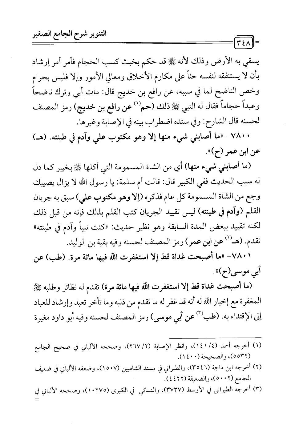 7801 - "ما أصبحت غداة قط إلا استغفرت الله فيها مائة مرة. (طب) عن أبي موسى (ح) ".