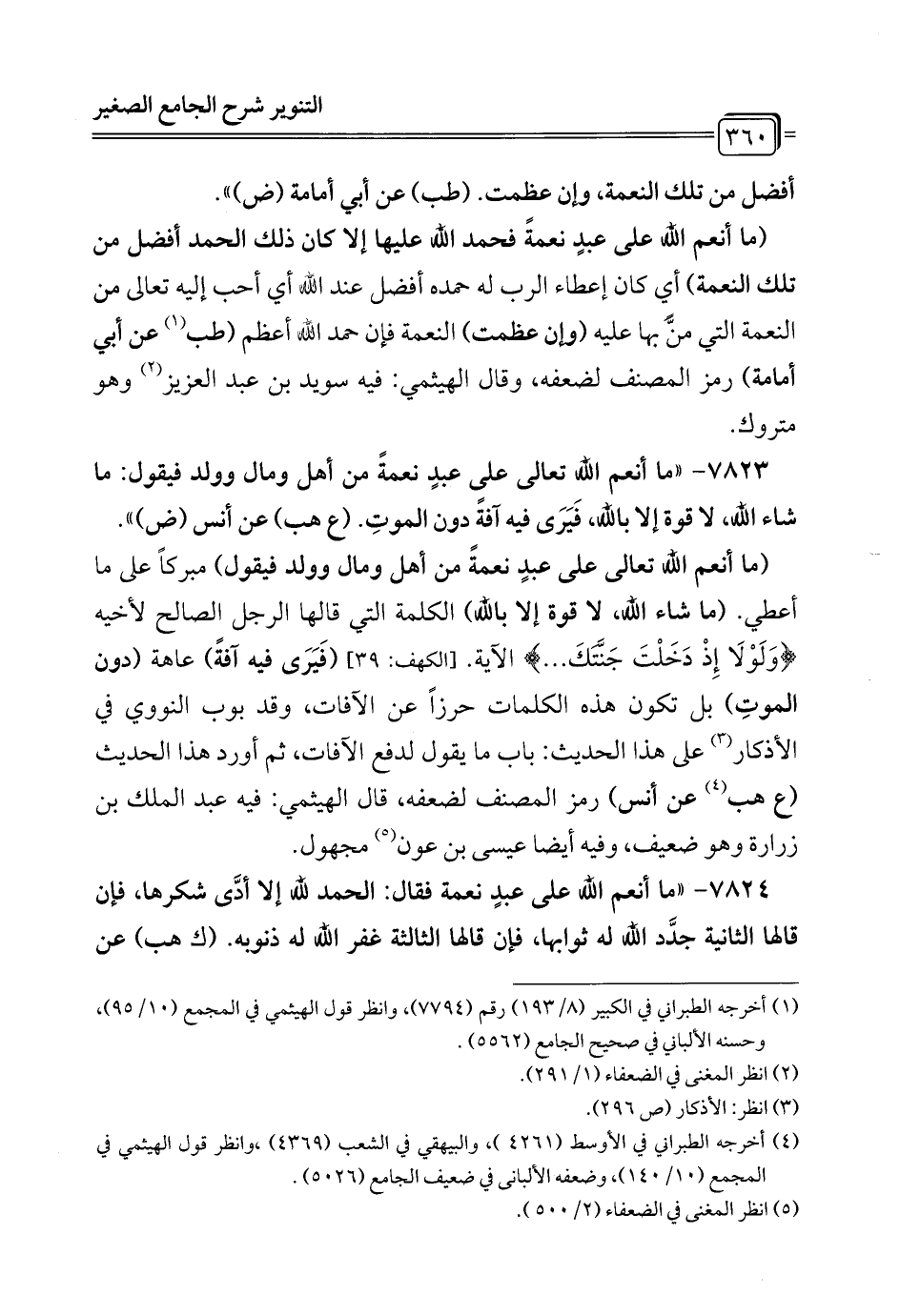 7824 - "ما أنعم الله على عبدٍ نعمة فقال: الحمد لله إلا أدَّى شكرها، فإن قالها الثانية جدَّد الله له ثوابها، فإن قالها الثالثة غفر الله له ذنوبه. (ك هب) عن