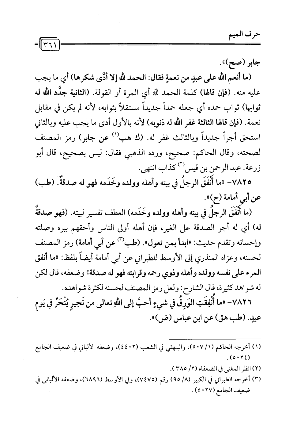 7825 - "ما أَنْفَقَ الرجلُ في بيته وأهله وولده وخَدَمه فهو له صدقةٌ. (طب) عن أبي أمامة (ح) ".