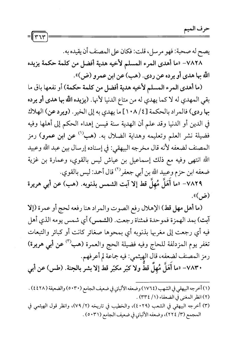 7829 - "ما أَهَلَّ مُهِلَّ قط إلا آبت الشمس بذنوبه. (هب) عن أبي هريرة (ض) ".