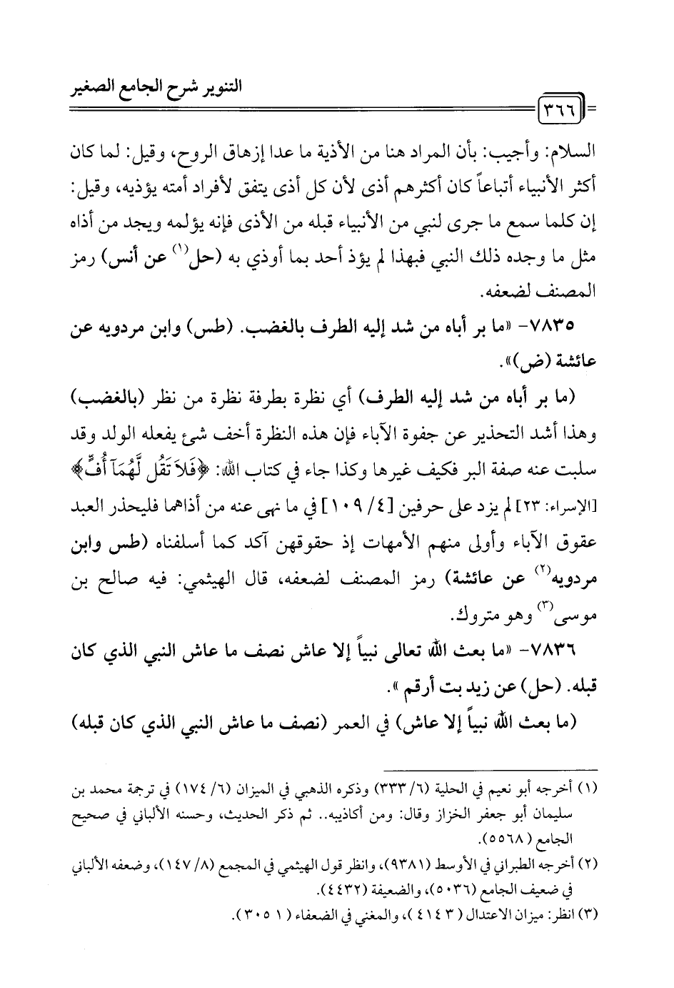7835 - "ما بر أباه من شد إليه الطرف بالغضب. (طس) وابن مردويه عن عائشة (ض) ".