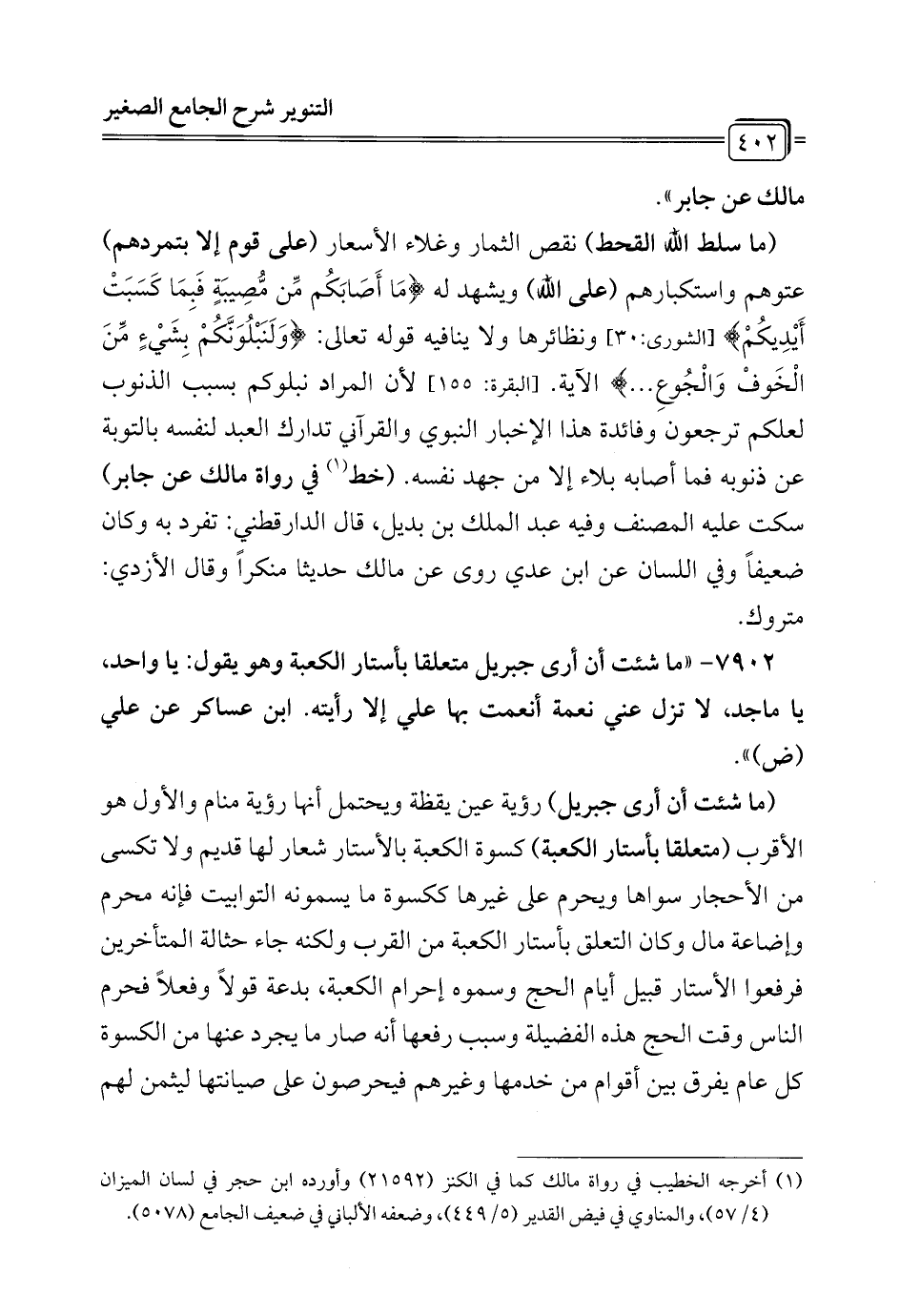 7902 - "ما شئت أن أرى جبريل متعلقا بأستار الكعبة وهو يقول: يا واحد، يا ماجد، لا تزل عني نعمة أنعمت بها علي إلا رأيته. ابن عساكر عن علي (ض) ".