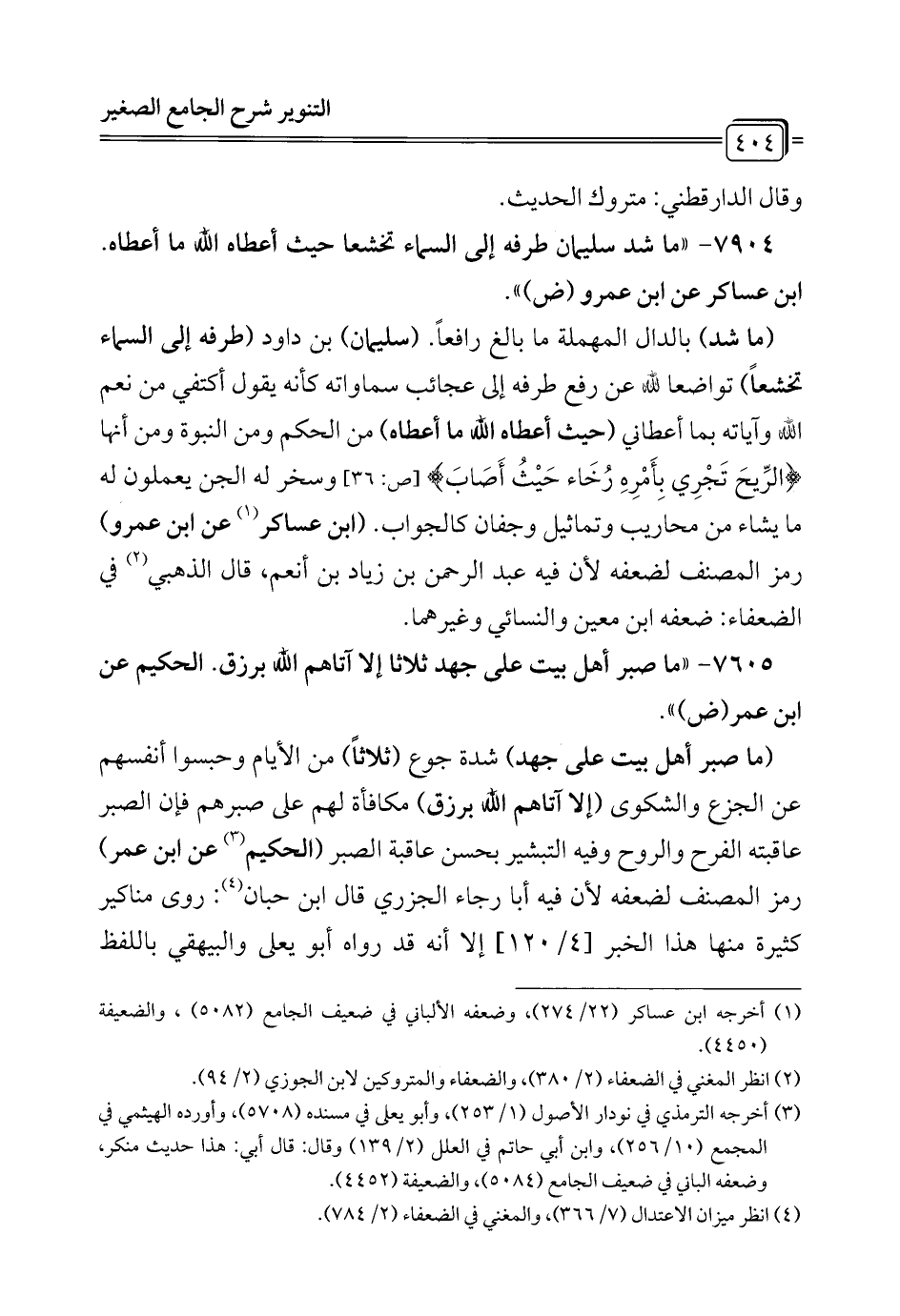 7605 - "ما صبر أهل بيت على جهد ثلاثاً إلا آتاهم الله برزق. الحكيم عن ابن عمر (ض) ".