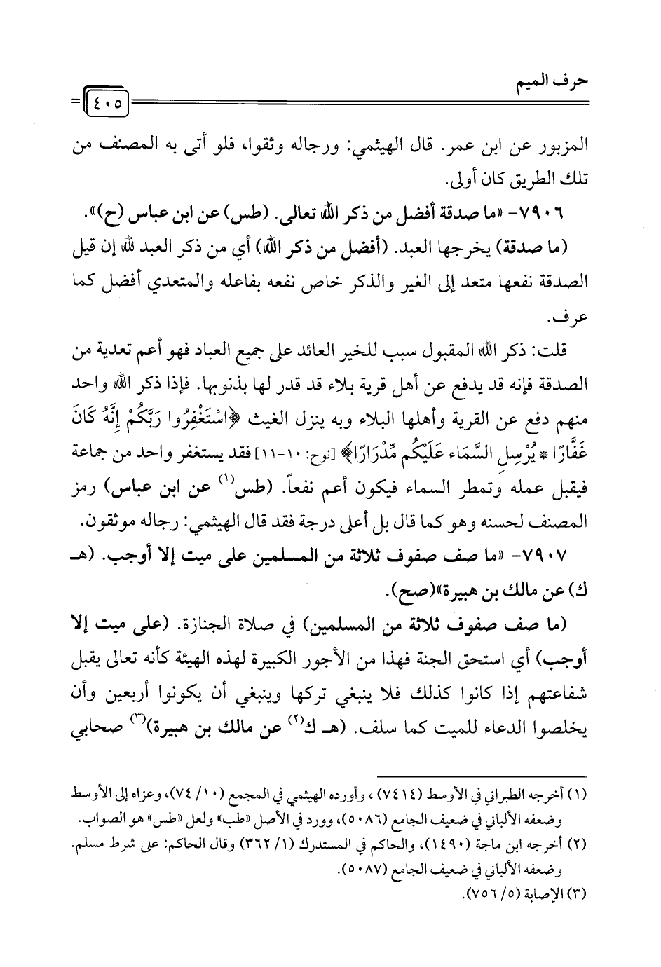 7907 - "ما صف صفوف ثلاثة من المسلمين على ميت إلا أوجب. (هـ ك) عن مالك بن هبيرة" (صح).