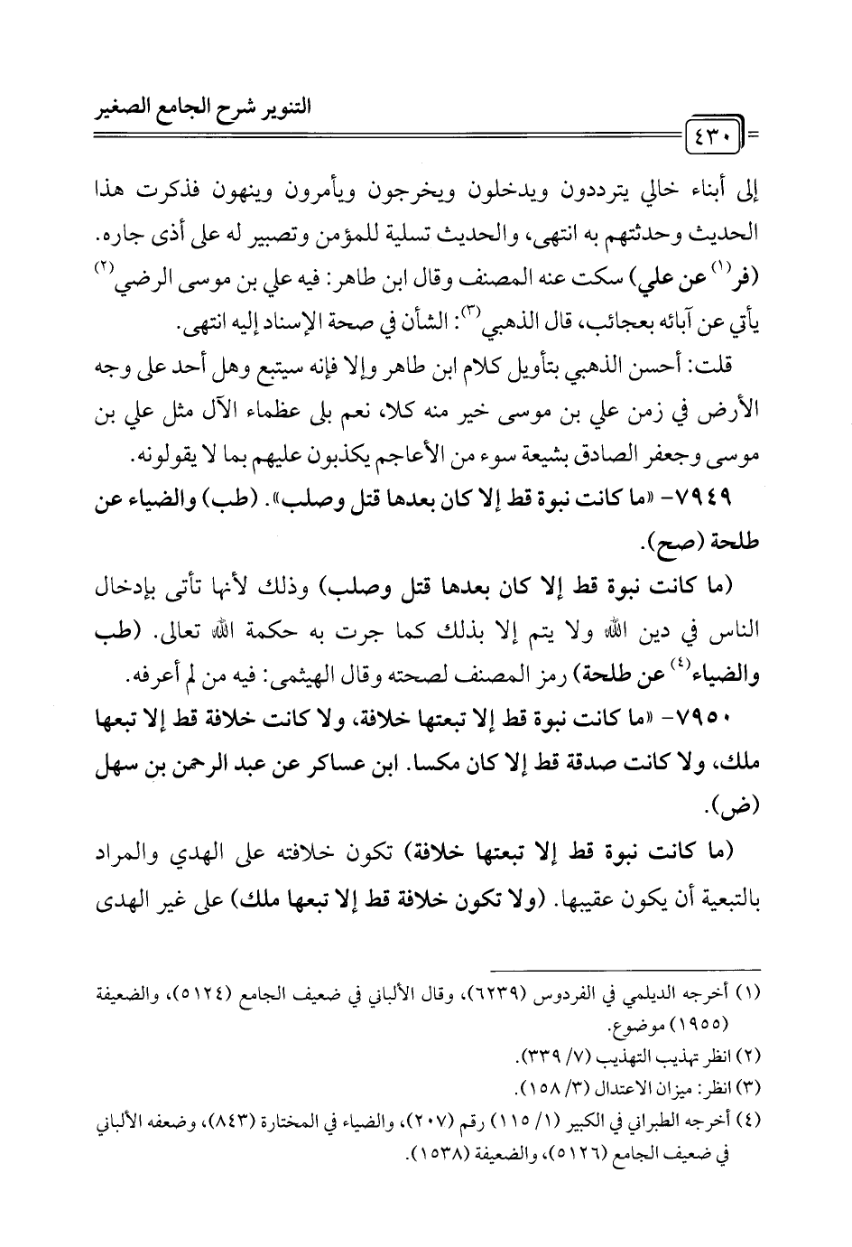 7950 - "ما كانت نبوة قط إلا تبعتها خلافة، ولا كانت خلافة قط إلا تبعها ملك، ولا كانت صدقة قط إلا كان مكسا. ابن عساكر عن عبد الرحمن بن سهل (ض).