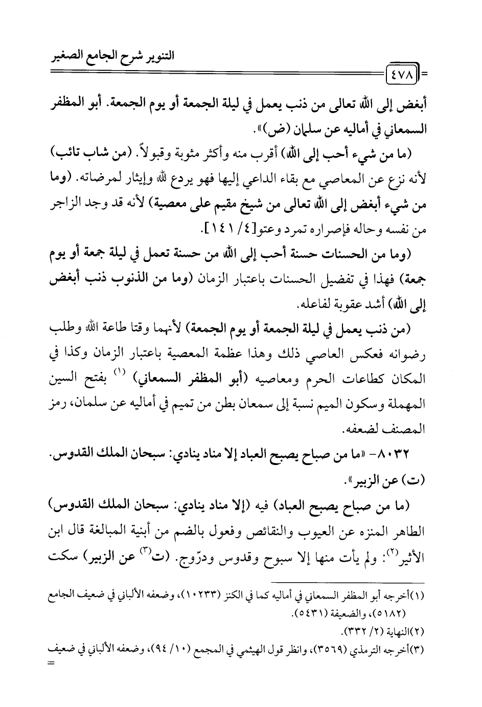 8032 - "ما من صباح يصبح العباد إلا مناد ينادي: سبحان الملك القدوس. (ت) عن الزبير".