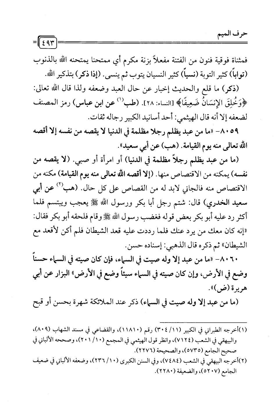 (¬2) أخرجه البيهقي في الشعب (7484)، وفي السنن الكبرى (10/ 236)، وضعفه الألباني في ضعيف الجامع (5207)، والضعيفة (2280).