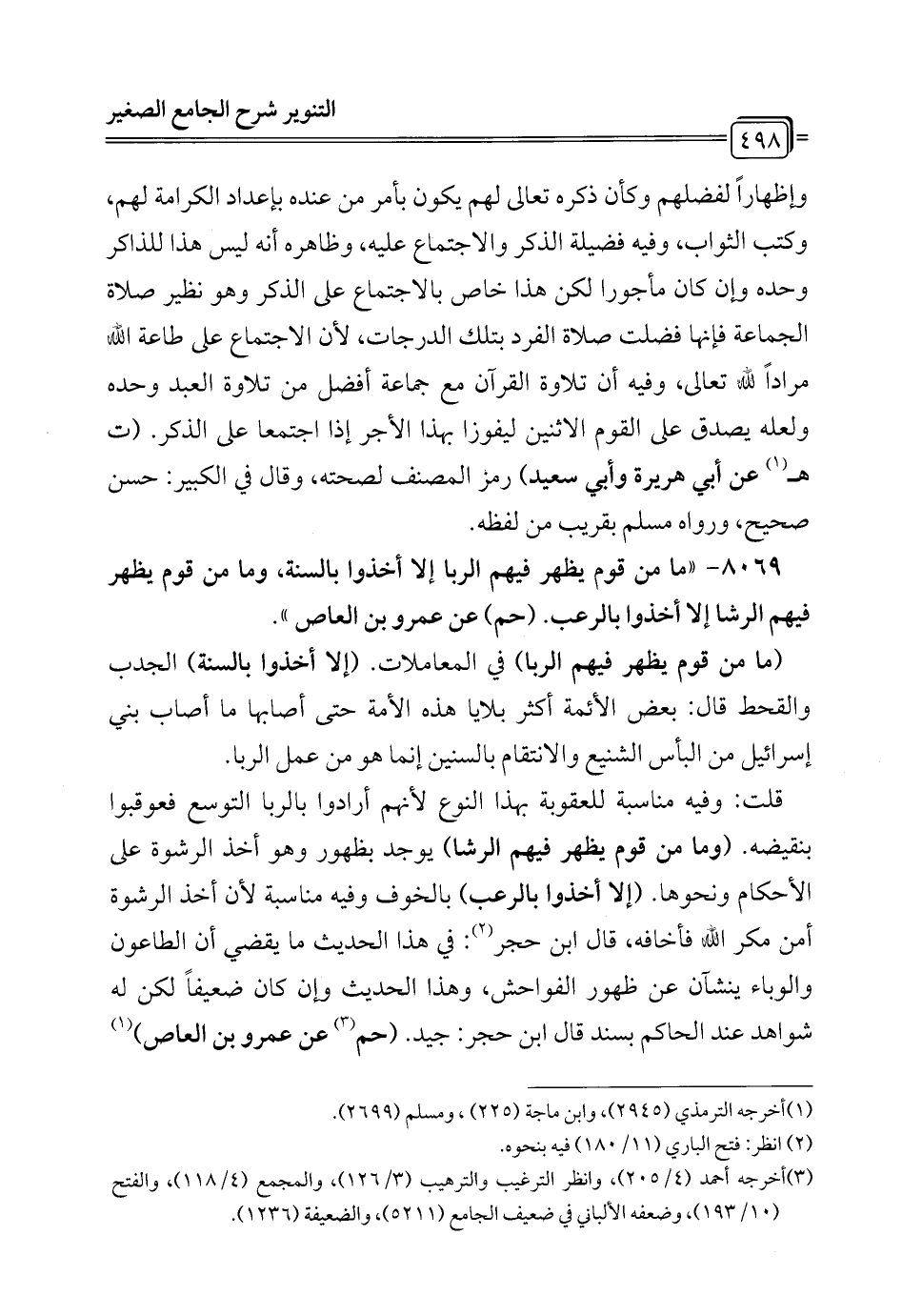 8069 - "ما من قوم يظهر فيهم الربا إلا أخذوا بالسنة، وما من قوم يظهر فيهم الرشا إلا أخذوا بالرعب. (حم) عن عمرو بن العاص".