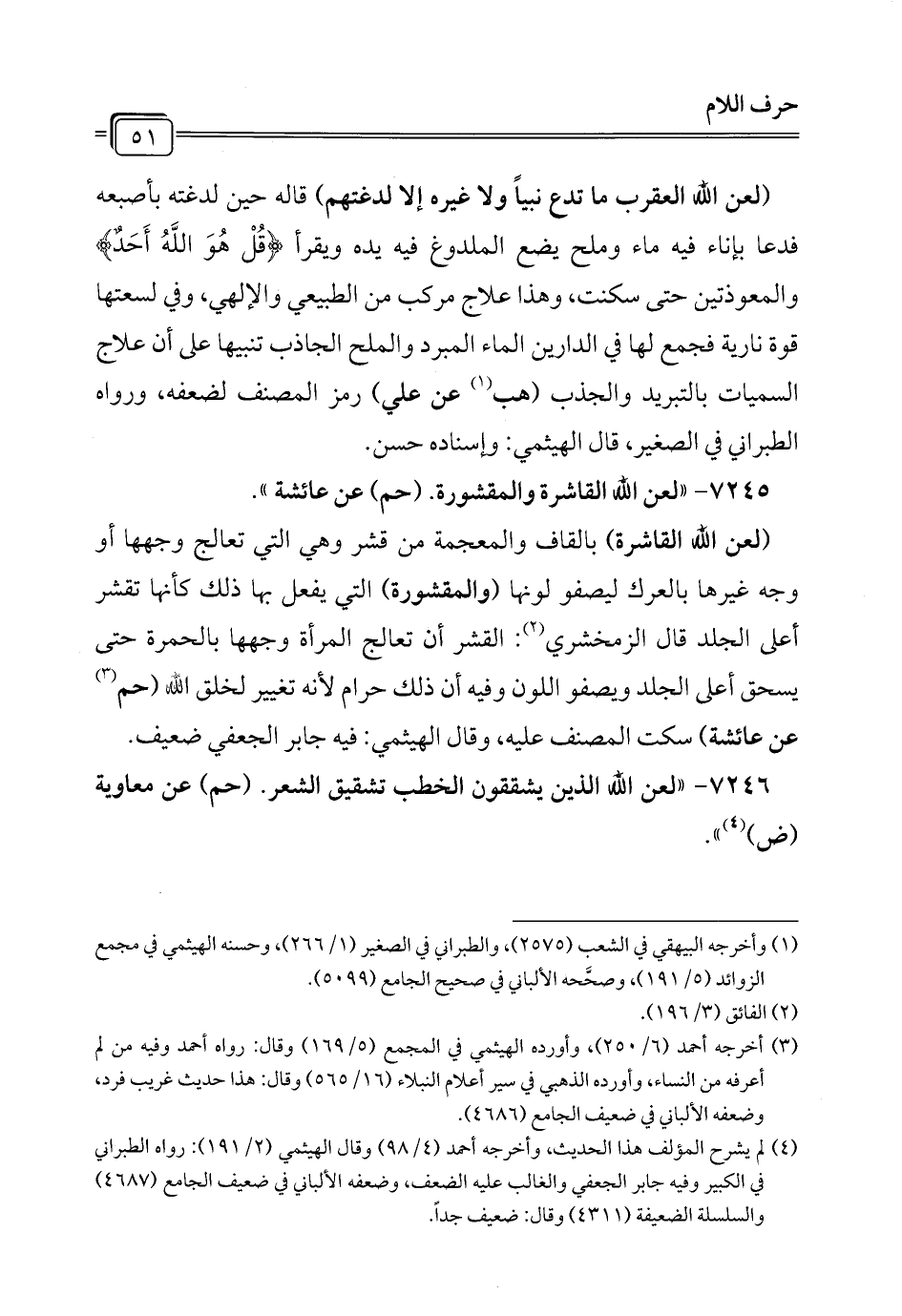 7245 - "لعن الله القاشرة والمقشورة. (حم) عن عائشة".