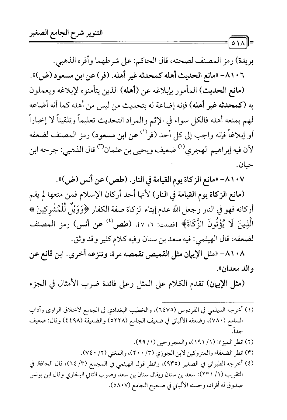 8107 - "مانع الزكاة يوم القيامة في النار. (طص) عن أنس (ض) ".