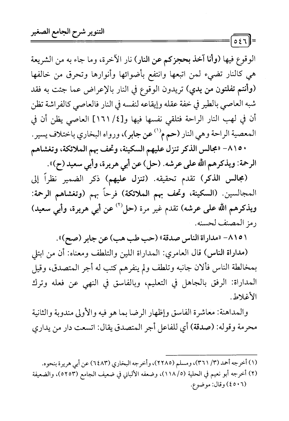 8151 - "مداراة الناس صدقة" (حب طب هب) عن جابر (صح) ".