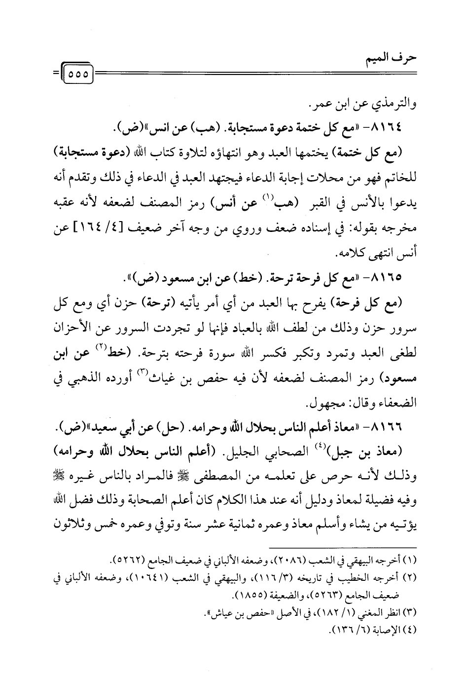 8166 - "معاذ أعلم الناس بحلال الله وحرامه. (حل) عن أبي سعيد" (ض).