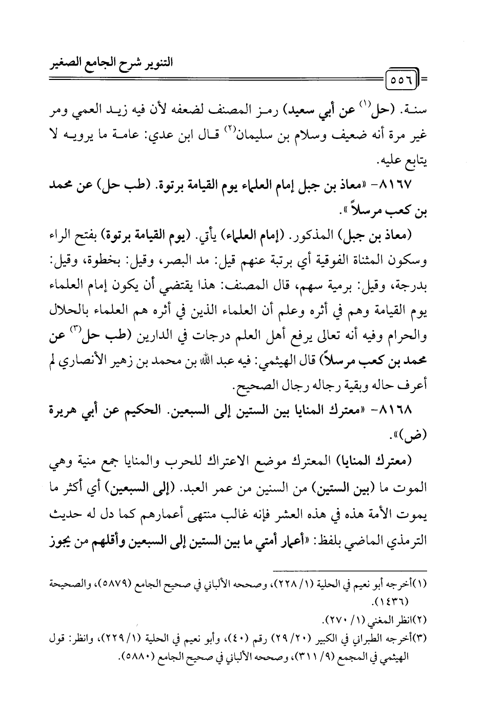 8168 - "معترك المنايا بين الستين إلى السبعين. الحكيم عن أبي هريرة (ض) ".