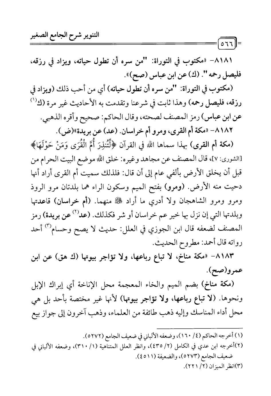 8182 - "مكة أم القرى، ومرو أم خراسان. (عد) عن بريدة" (ض).