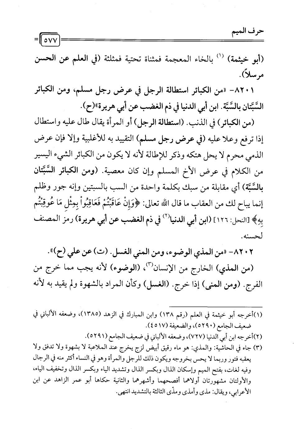 8201 - "من الكبائر استطالة الرجل في عرض رجل مسلم، ومن الكبائر السَّبَّتان بالسَّبَّه. ابن أبي الدنيا في ذم الغضب عن أبي هريرة" (ح).