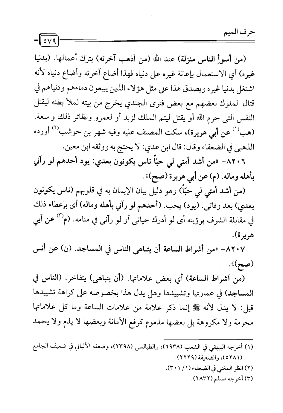 8207 - "من أشراط الساعة أن يتباهى الناس في المساجد. (ن) عن أنس (صح) ".