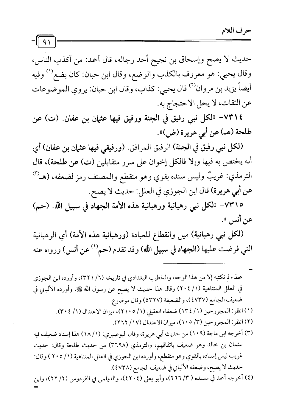 7315 - "لكل نبي رهبانية ورهبانية هذه الأمة الجهاد في سبيل الله. (حم) عن أنس".