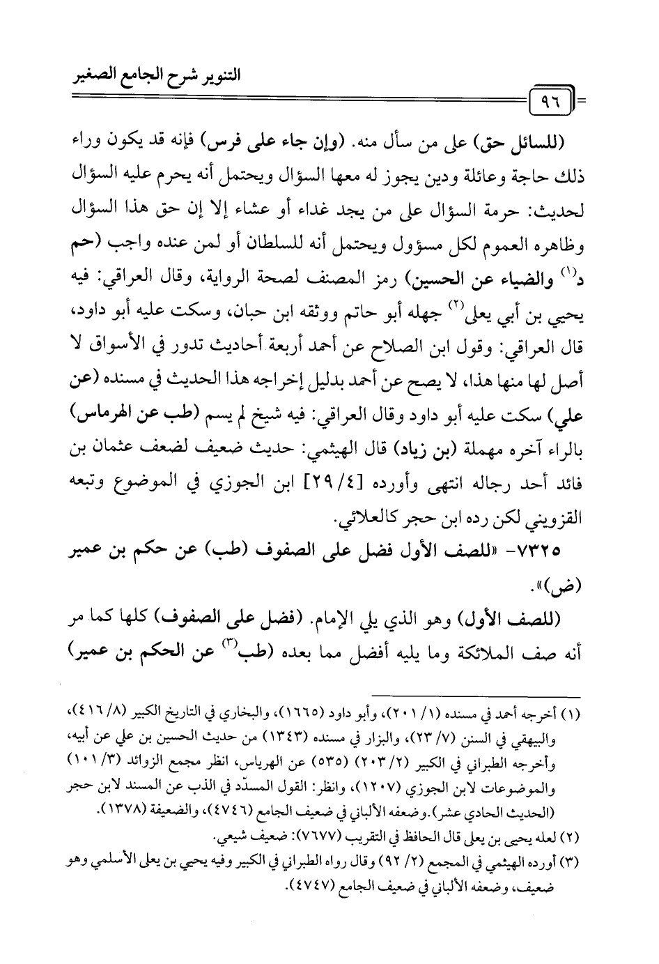 7325 - "للصف الأول فضل على الصفوف (طب) عن حكم بن عمير (ض) ".