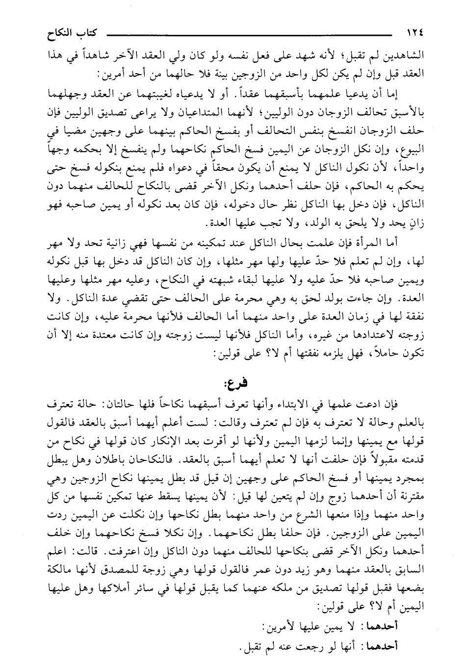 فإن ادعت علمها في الابتداء وأنها تعرف أسبقهما نكاحًا فلها حالتان: حالة تعترف بالعلم وحالة لا تعترف به فإن لم تعترف قالت: لست أعلم أيهما أسبق بالعقد فالقول قولها مع يمينها وإنما لزما اليمين ولأنها لو أقرت بعد الإنكار كان قولها في نكاح من قدمته مقبولًا فإن حلفت أنها لا تعلم أيما أسبق بالعقد. فالنكاحان باطلان وهل يبطل بمجرد يمينها أو فسخ الحاكم على وجهين إن قيل قد بطل يمينها نكاح الزوجين وهي مقترنة أن أحدهما زوج وإن لم يتعين لها قيل: لأن يمينها يسقط عنها تمكين نفسها من كل واحد منهما وإذا منعها الشرع من واحد منهما بطل نكاحها وإن نكلت عن اليمين ردت اليمين على الزوجين. فإن حلفا بطل نكاحهما. وإن نكلا فسخ نكاحهما وإن خلف أحدهما ونكل الآخر قضى بنكاحها للحالف منهما دون الناكل وإن اعترفت. قالت: اعلم السابق بالعقد منهما وهو زيد دون عمر فالقول قولها وهي زوجة للمصدق لأنها مالكة بضعها فقبل قولها تصديق من ملكه عنهما كما يقبل قولها في سائر أملاكها وهل عليها اليمين أم لا؟ على قولين.