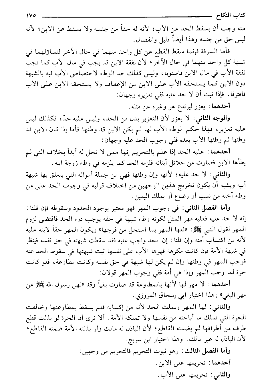 وأما الفصل الثاني: في وجوب المهر فهو معتبر بوجود الحدود وسقوطه فإن قلنا: إنه لا حد عليه فعليه مهر المثل لكونه وطء شبهة في حقه يوجب درء الحد فاقتضى لزوم المهر لقول النبي صلى الله عليه وسلم: " فلها المهر بما استحل من فرجها " ويكون المهر حقا لابنه عليه لأنه من اكتساب أمته وان قلنا: إن الحد واجب عليه فقد سقطت شبهته في حق نفسه فينظر في شبهة الأمة فإن كانت مكرهة قهرها الأب على نفسها ثبت شبهتها في سقوط الحد عنه فوجب المهر في وطئها وان لم يكن لها شبهة في حق نفسه وكانت مطاوعة، فلو كانت حرة لما وجب المهر وإذا هي أمة ففي وجوب المهر قولان: