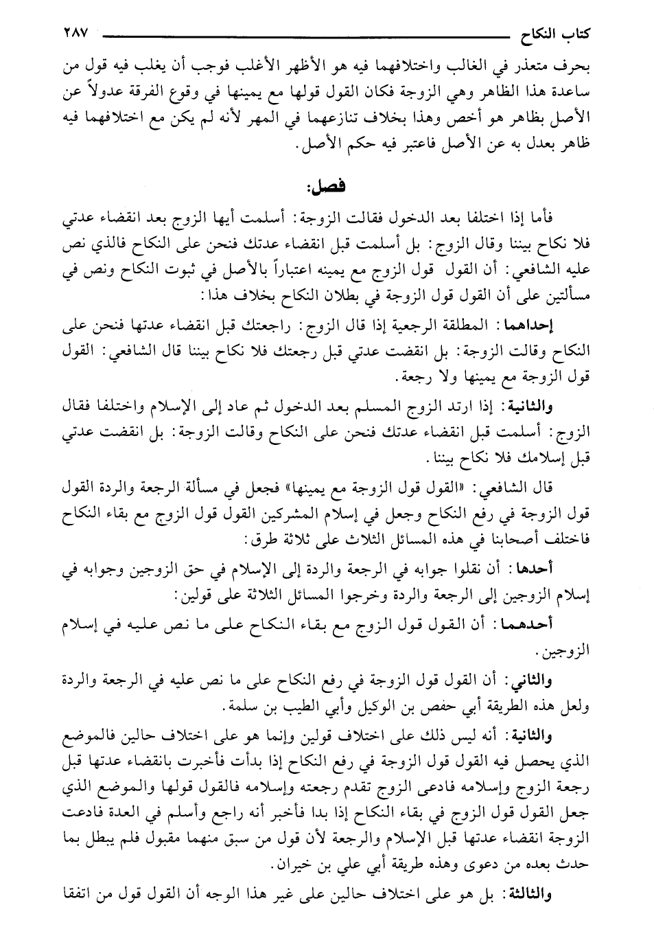 والثانية: إذا ارتد الزوج المسلم بعد الدخول ثم عاد إلى الإسلام واختلفا فقال الزوج: أسلمت قبل انقضاء عدتك فنحن على النكاح وقالت الزوجة: بل انقضت عدتي قبل إسلامك فلا نكاح بيننا.
