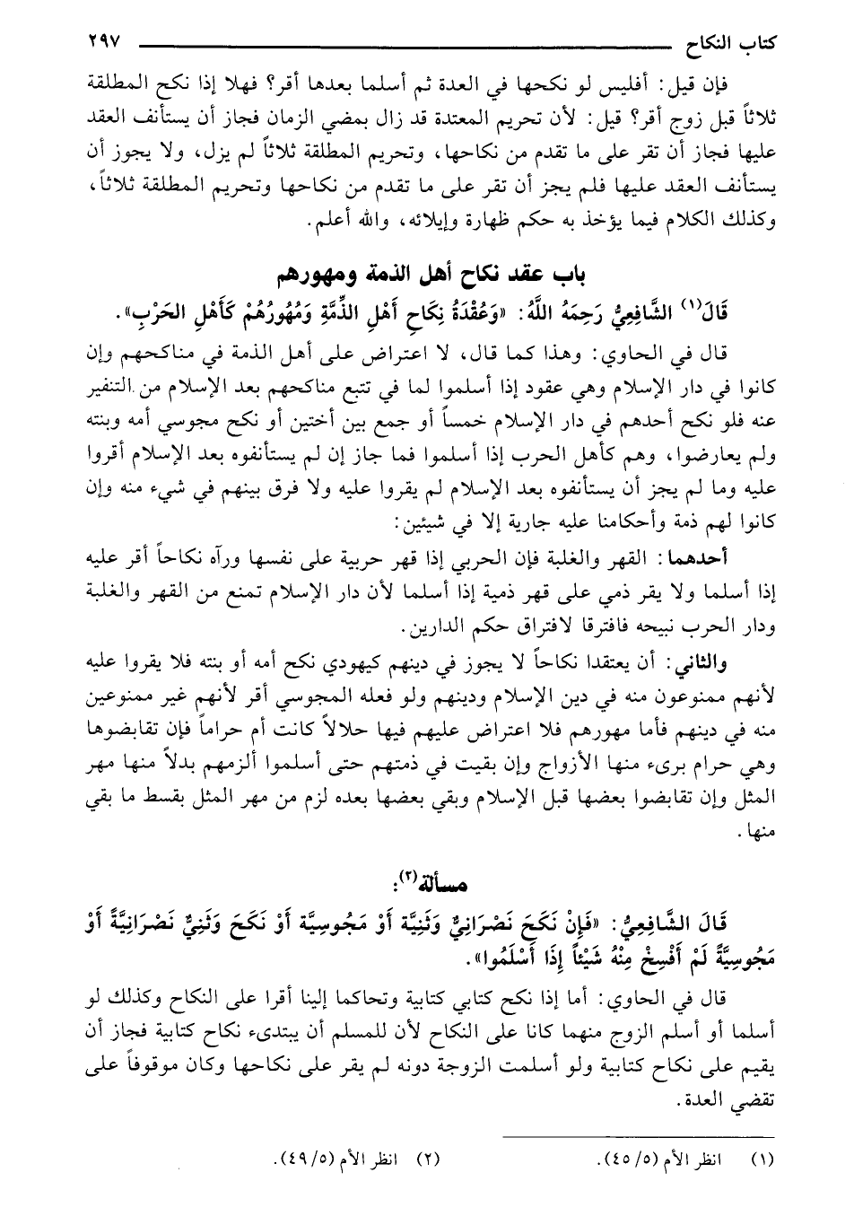 قَالَ الشَّافِعِيُّ رَحِمَهُ اللهُ: "وَعُقْدَةُ نِكَاحِ أَهْلِ الذِّمَّةِ وَمُهُورُهُمْ كَأَهْلِ الحَرْبِ".