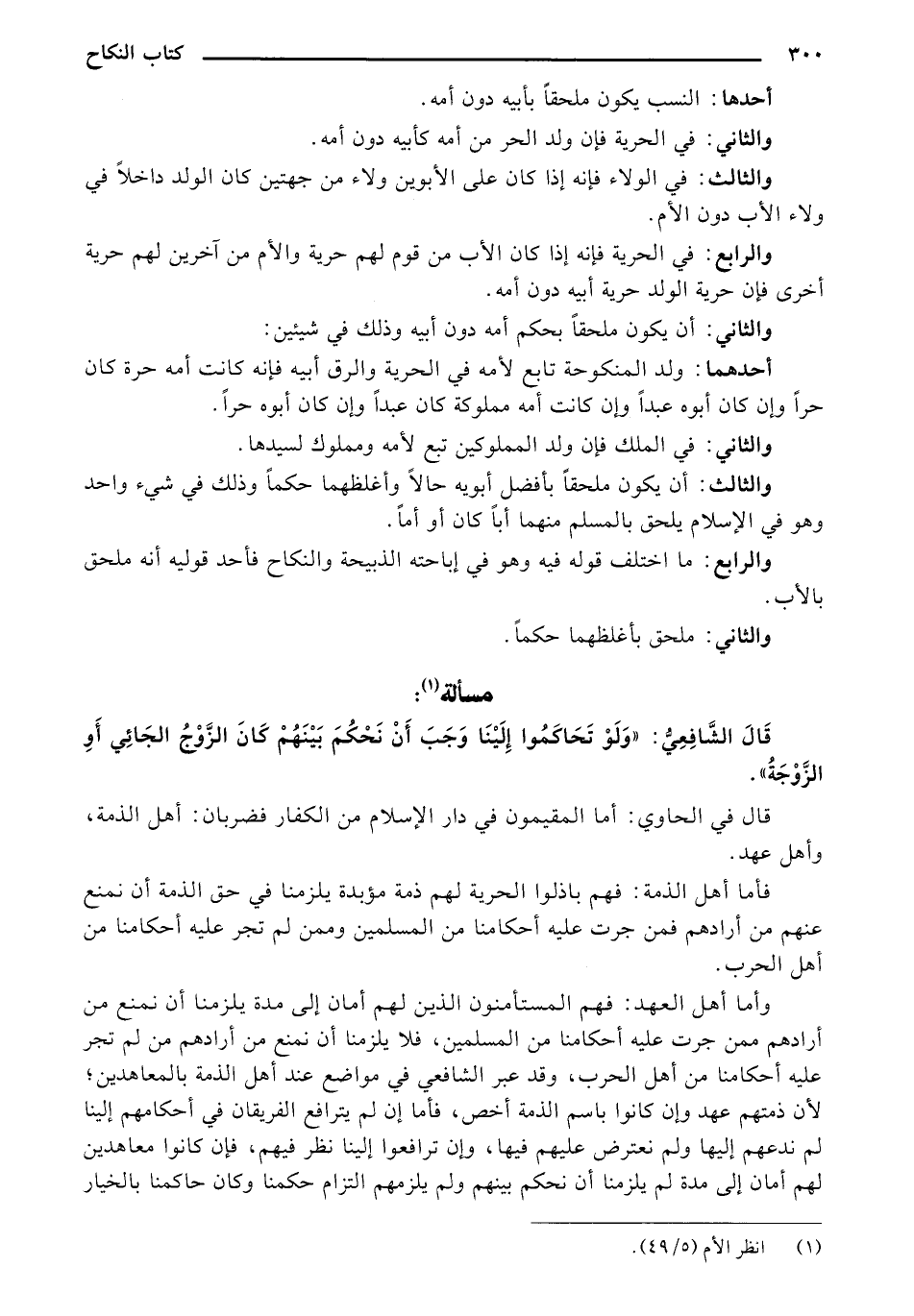 والثالث: أن يكون ملحقًا بأفضل أبويه حالًا وأغلظهما حكمًا وذلك في شيء واحد وهو في الإسلام يلحق بالمسلم منهما أبًا كان أو أمًا.