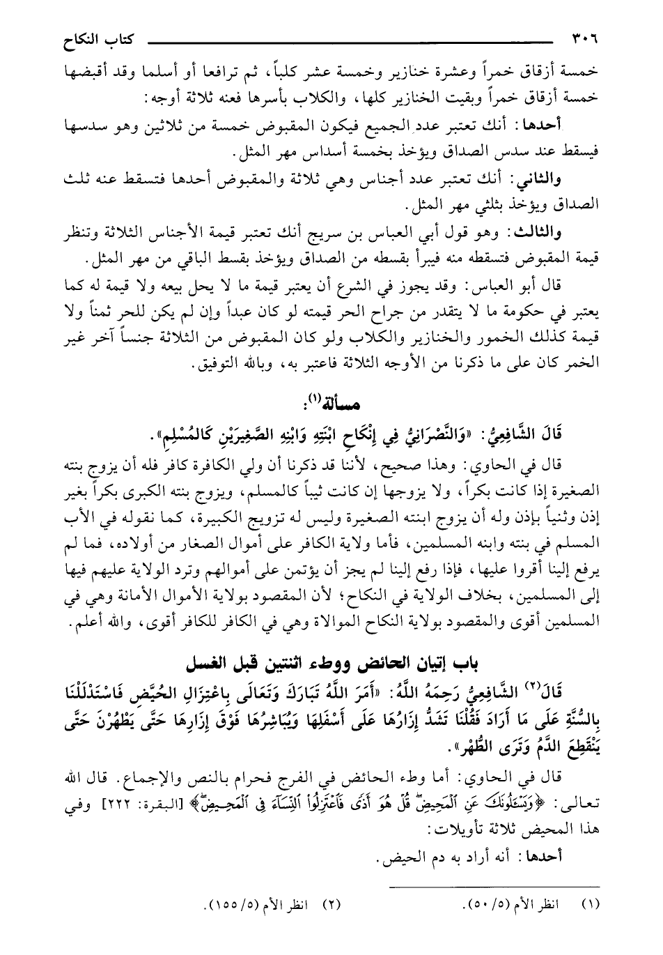 قَالَ الشَّافِعِيُّ: «وَالنَّصْرَانِيُّ فِي إِنْكَاحش ابْنَتِهِ وَابْنِهِ الصَّغِيرَيْنِ كَالمُسْلِمِ».