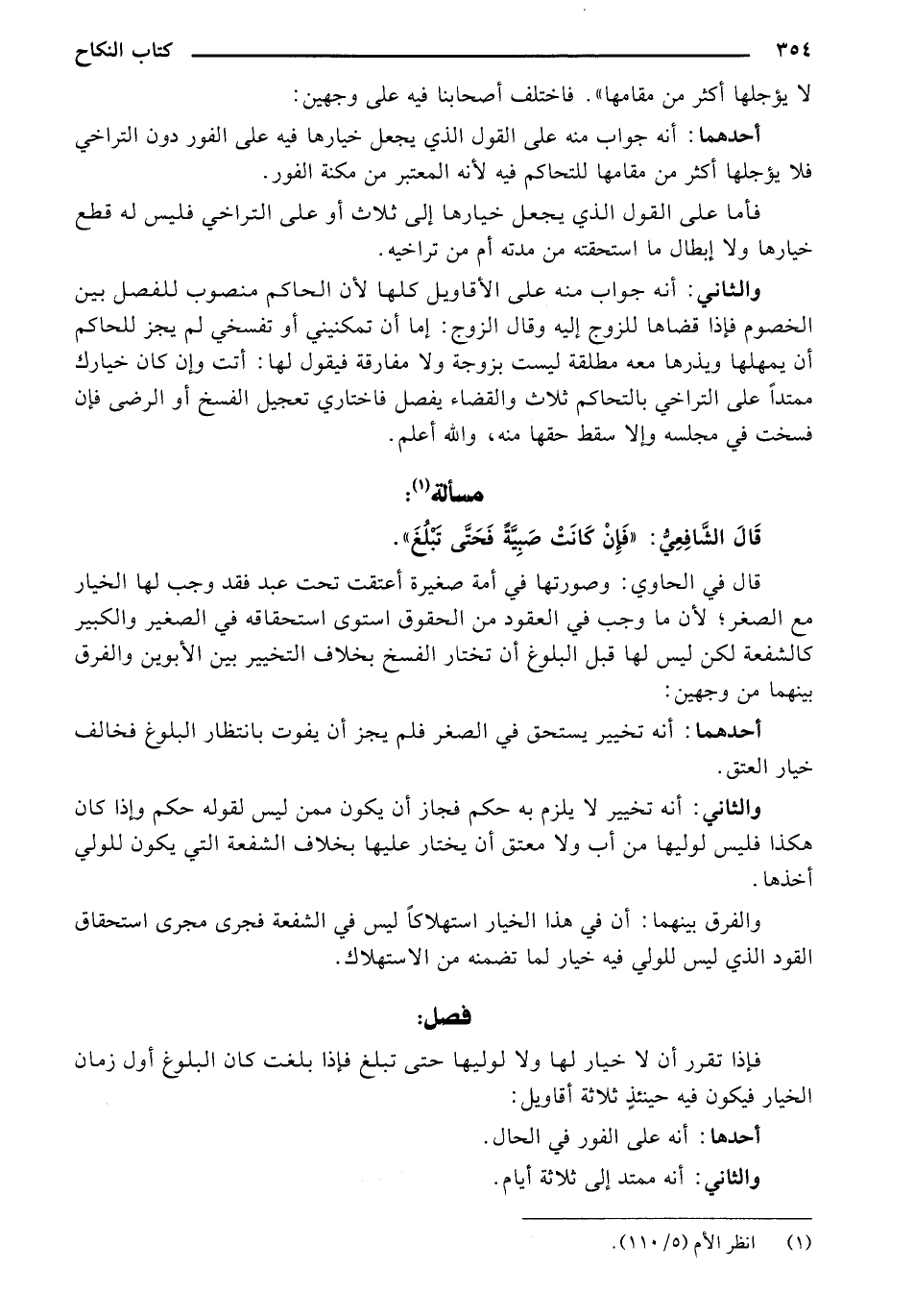 قَالَ الشَّافِعِيُّ: "فَإنْ كَانَتْ صَبِيَّةً فَحَتَّى تّبْلُغَ".