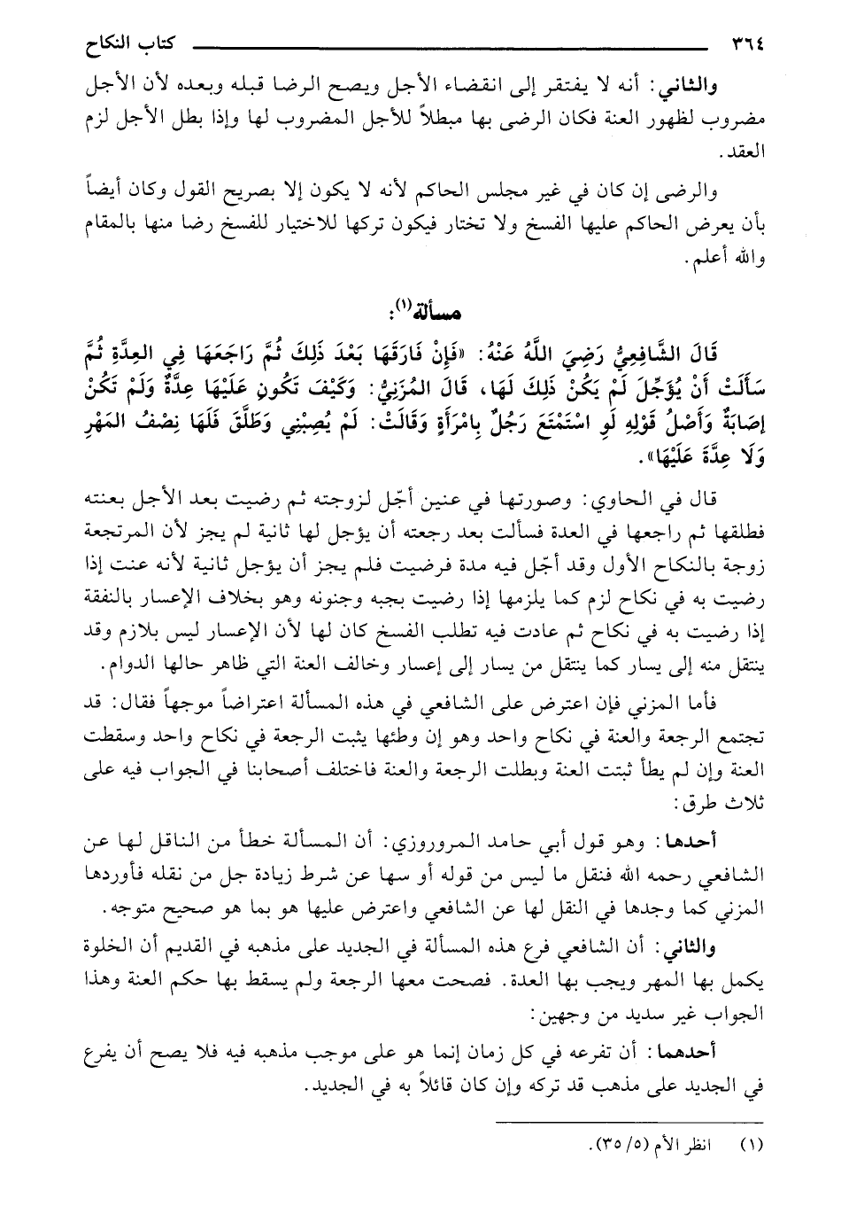 قَالَ الشَّافِعِيُّ رَضِيَ الله عَنْهُ: "فَإِنْ فَارَقَهَا بَعْدَ ذَلِكَ ثُمَّ رَاجَعَهَا فِي العِدَّةِ ثُمَّ سَأَلَتَ أَنْ يُؤَجٌلَ لَمْ يَكُنْ ذَلِك لَهَا, قَالَ المُزَنِيُّ: وَكَيْفَ تَكُونِ عَلَيْهَا عِدَّةٌ وَلَمْ تَكُنْ إصَابَةٌ وَأَصْلُ قَوْلِهِ لَوِ اسْتَمْتَعَ رَجُلٌ بِامْرَأَةٍ وَقَالَتْ: لَمْ يُصِبْنِي وَطَلَّقَ فَلَهَا نِصْفُ المَهْرِ وَلاَ عِدَّةَ عَلَيْهَا".