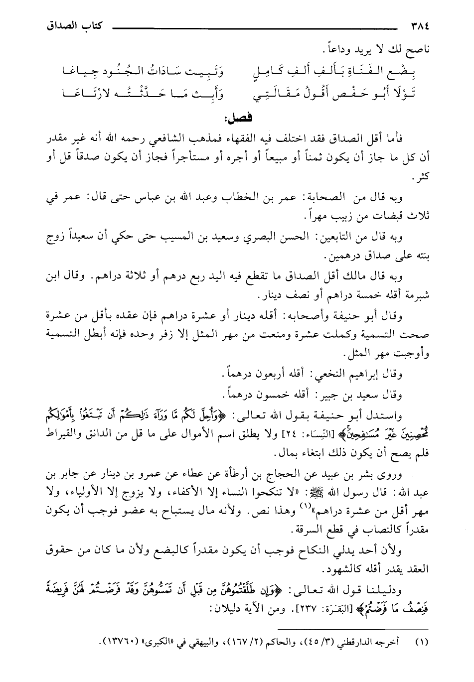 فأما أقل الصداق فقد اختلف فيه الفقهاء فمذهب الشافعي رحمه الله أنه غير مقدر أن كل ما جاز أن يكون ثمنًا أو مبيعًا أو أجره أو مستأجرًا فجاز أن يكون صدقًا قل أو كثر.
