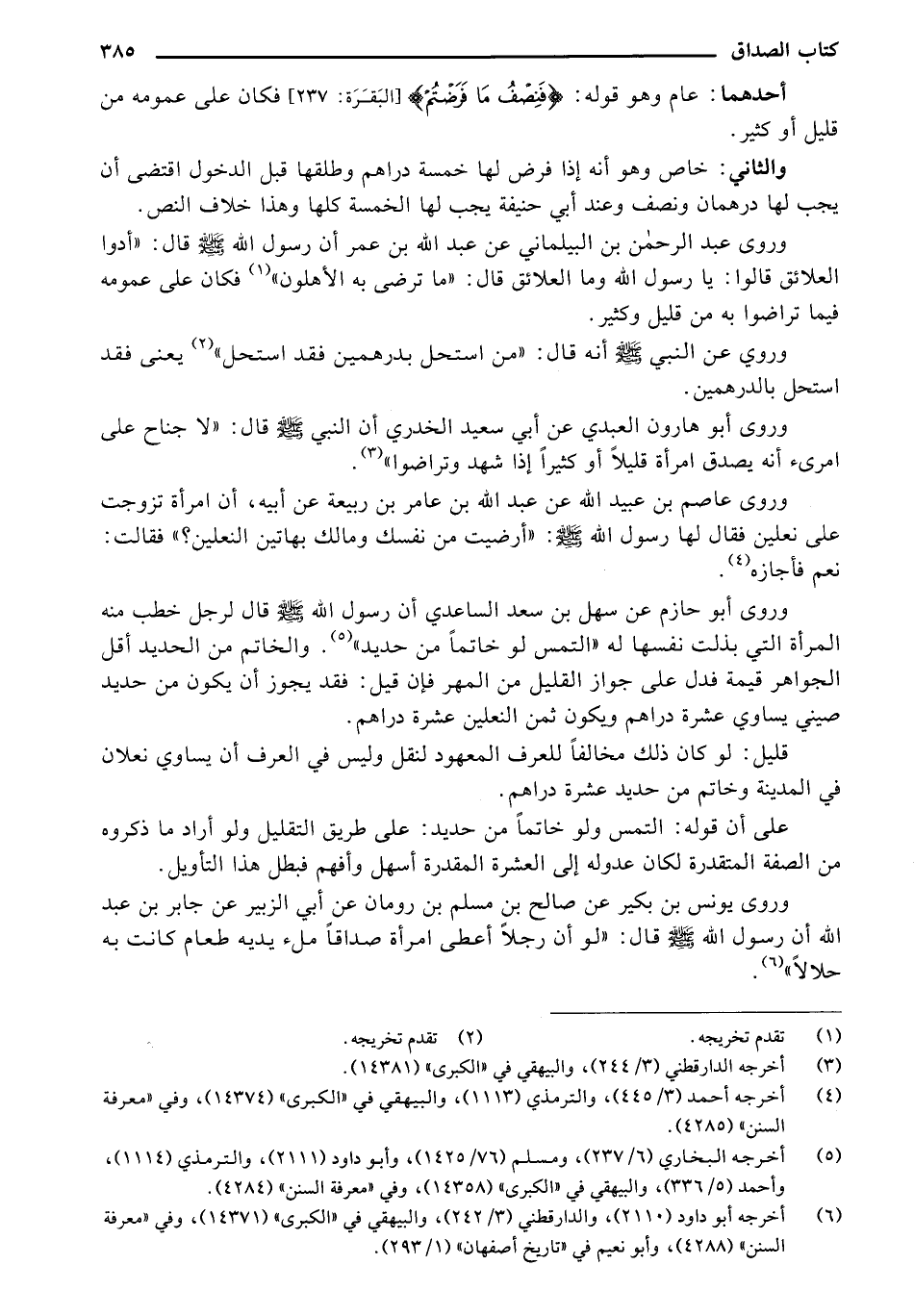 على أن قوله: التمس ولو خاتمًا من حديد: على طريق التقليل ولو أراد ما ذكروه من الصفة المتقدرة لكان عدوله إلى العشرة المقدرة أسهل وأفهم فبطل هذا التأويل.