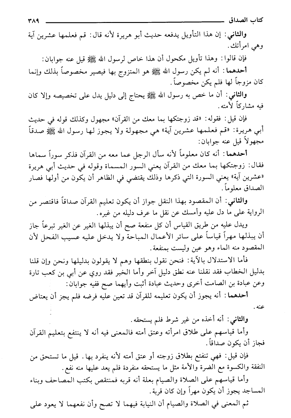 والثاني: إن هذا التأويل يدفعه حديث أبو هريرة لأنه قال: قم فعلمها عشرين آية وهي امرأتك.