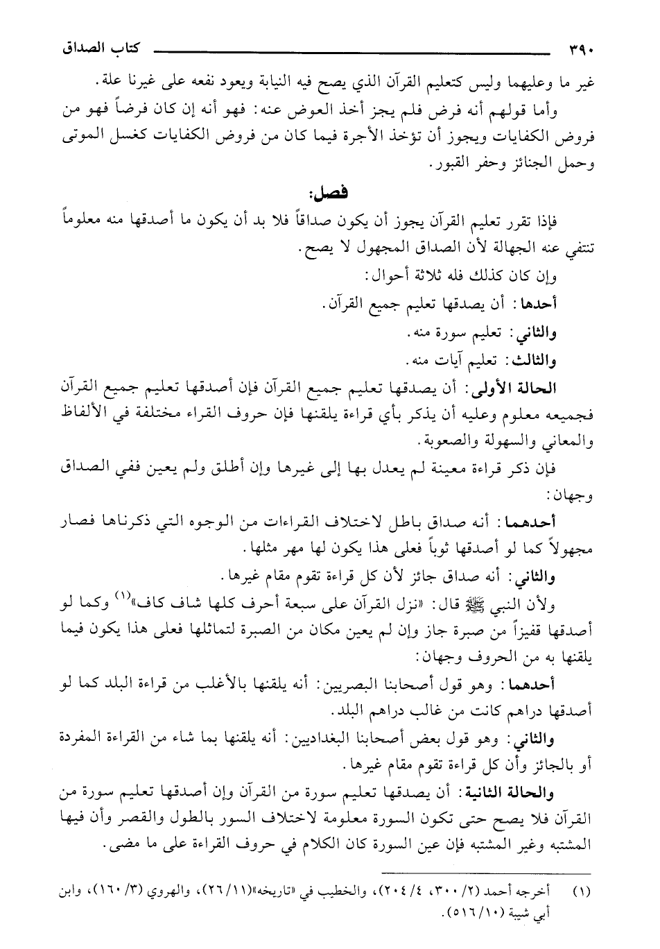 الحالة الأولى: أن يصدقها تعليم جميع القرآن فإن أصدقها تعليم جميع القرآن فجميعه معلوم وعليه أن يذكر بأي قراءة يلقنها فإن حروف القراء مختلفة في الألفاظ والمعاني والسهولة والصعوبة.
