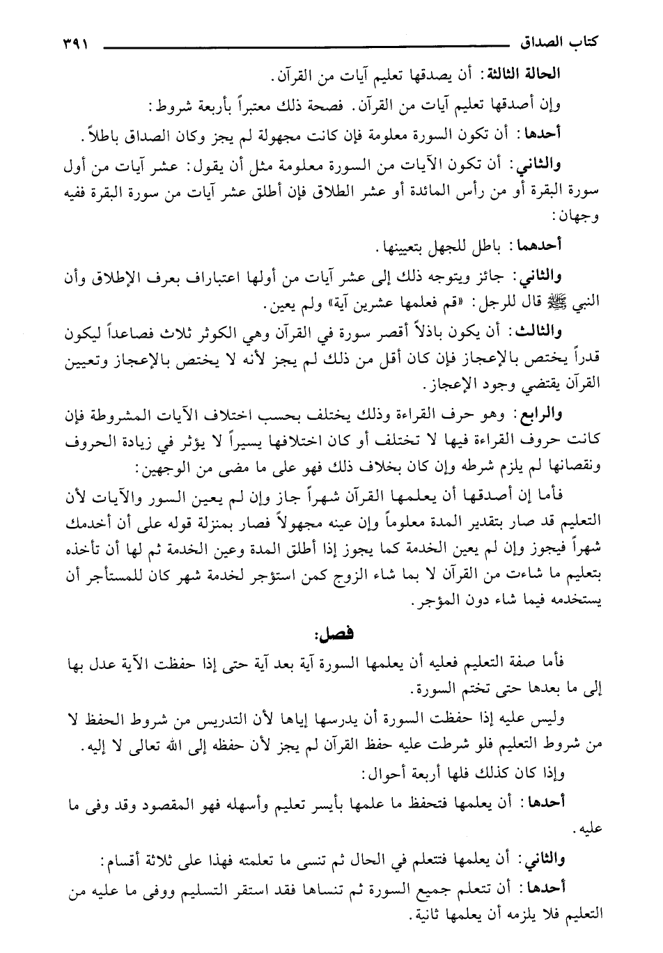 وان أصدقها تعليم آيات من القرآن. فصحة ذلك معتبرًا بأربعة شروط: