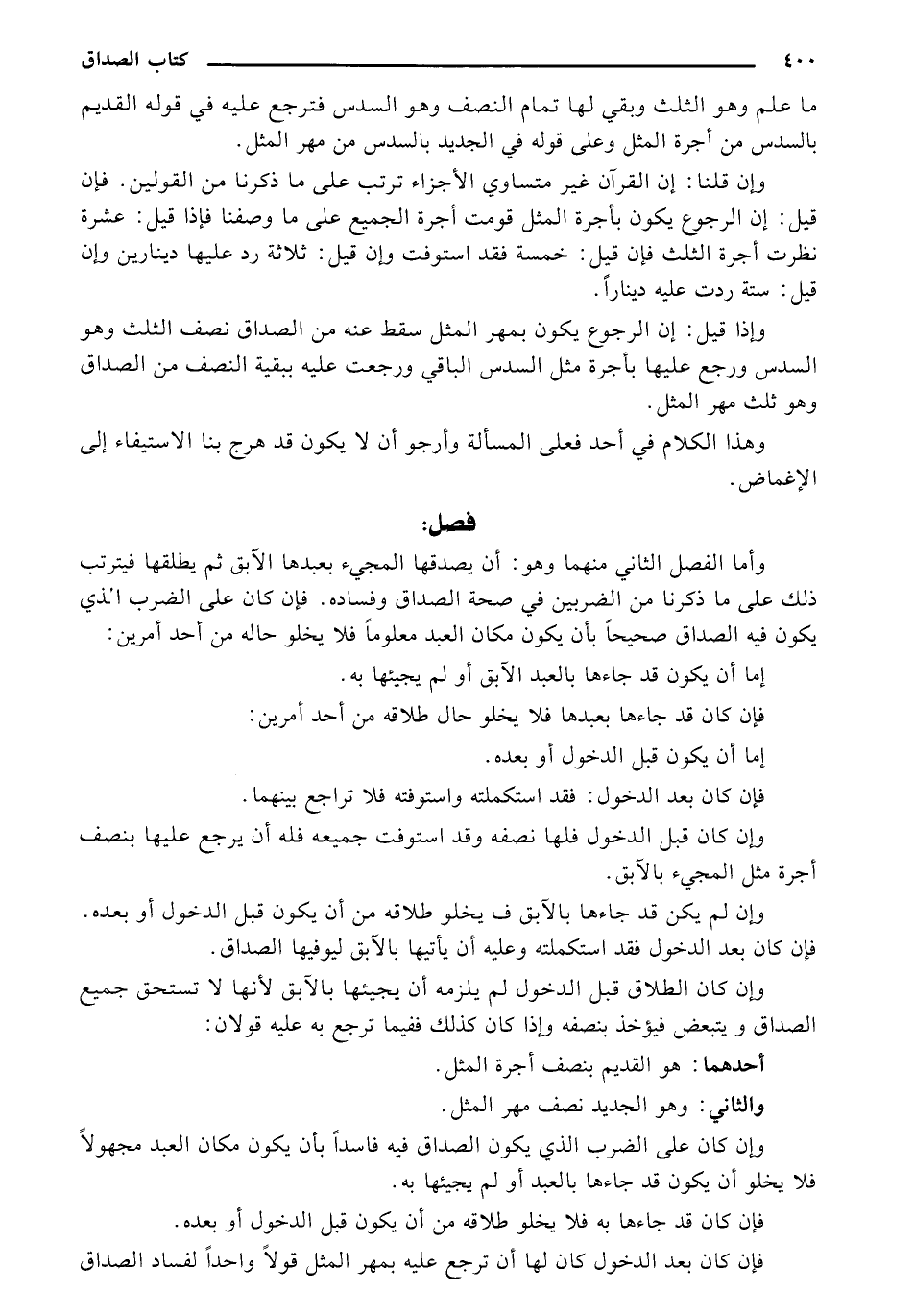 وأما الفصل الثاني منهما وهو: أن يصدقها المجيء بعبدها الأبق ثم يطلقها فيترتب ذلك على ما ذكرنا من الضربين في صحة الصداق وفساده. فإن كان على الضرب الذي يكون فيه الصداق صحيحًا بأن يكون مكان العبد معلومًا فلا يخلو حاله من أحد أمرين: