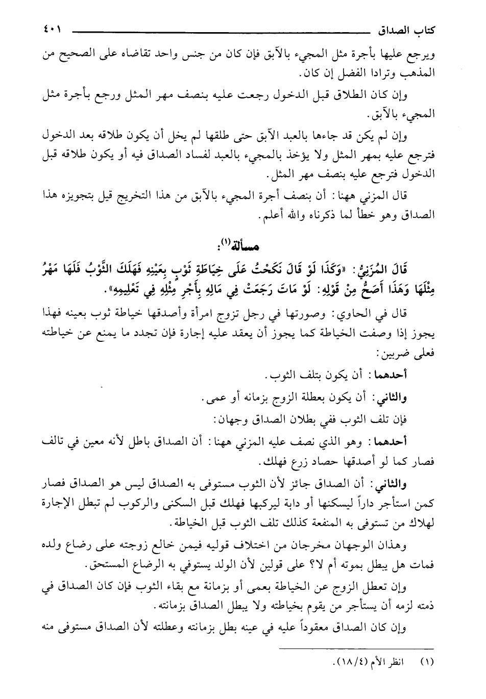 قال المزني ههنا: أن بنصف أجرةً المجيء بالآبق من هذا التخريج قيل بتجويزه هذا الصداق وهو خطأ لما ذكرناه والله أعلم.