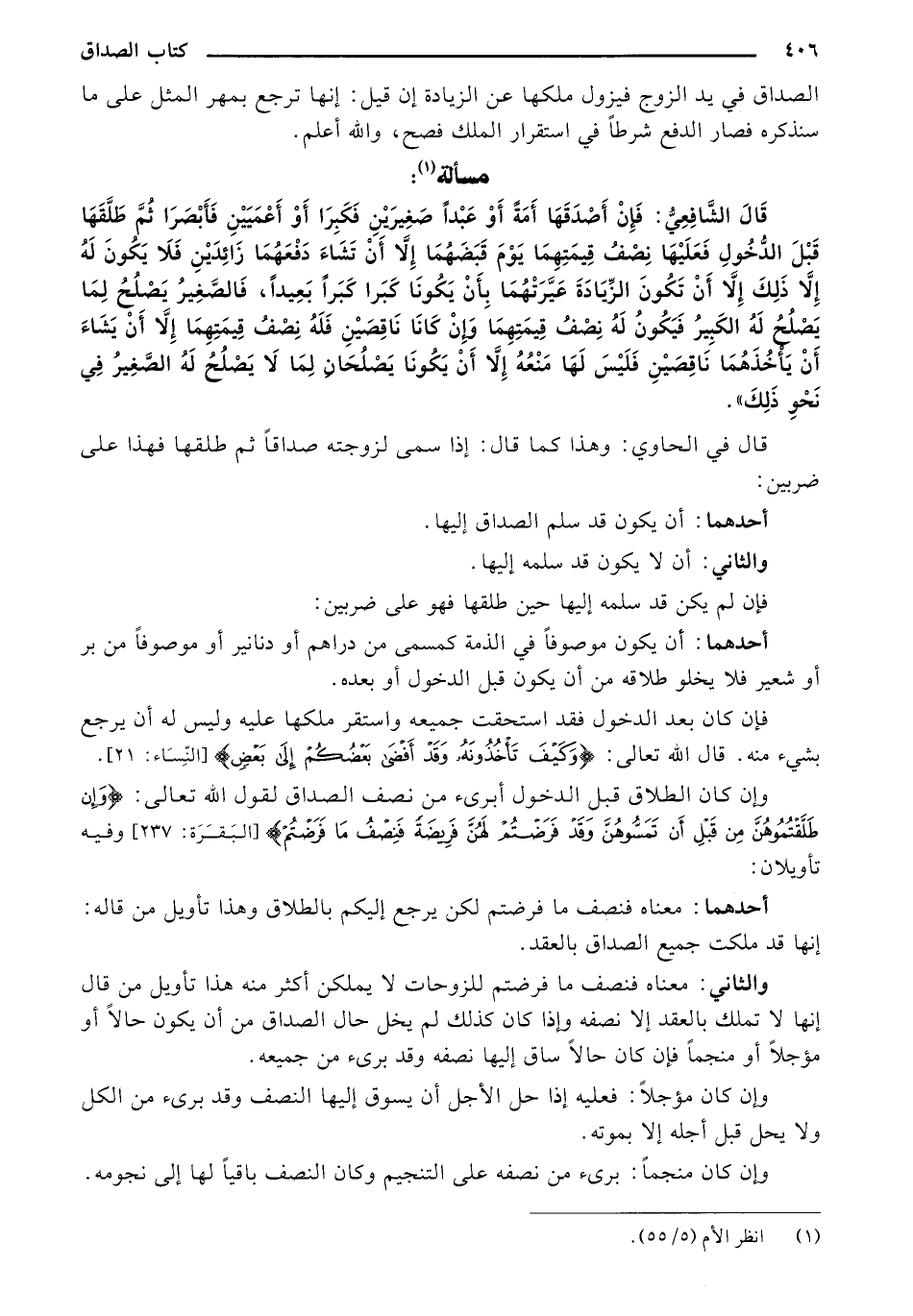 والثاني: معناه فنصف ما فرضتم للزوجات لا يملكن أكثر منه هذا تأويل من قال إنها لا تملك بالعقد إلا نصفه وإذا كان كذلك لم يخل حال الصداق من أن يكون حالًا أو مؤجلًا أو منجمًا فإن كان حالًا ساق إليها نصفه وقد بريء من جميعه.