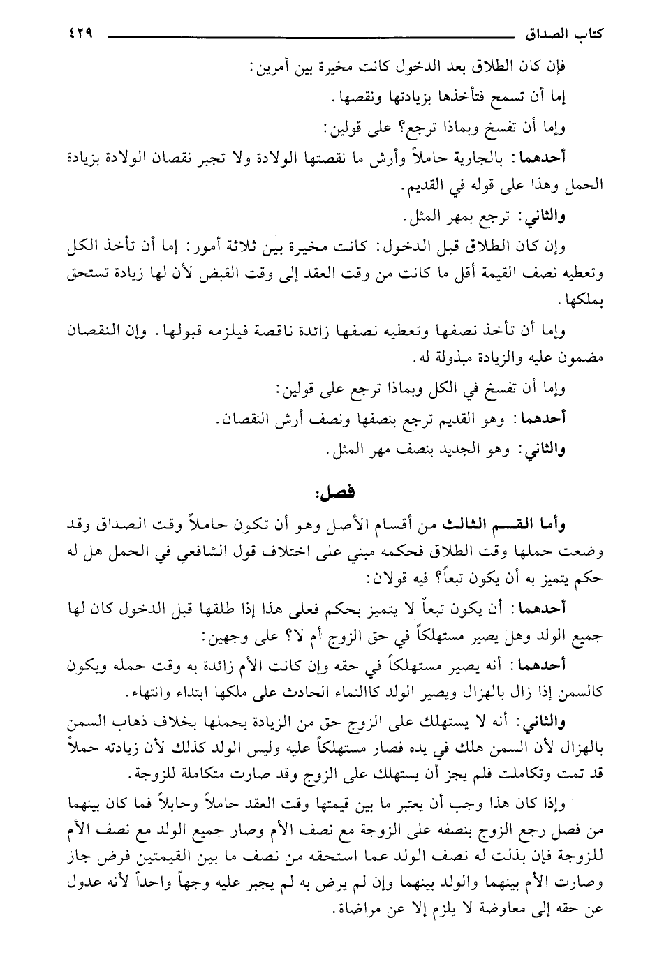 وأما القسم الثالث: من أقسام الأصل وهو أن تكون حاملاً وقت الصداق وقد وضعت حملها وقت الطلاق فحكمه مبني على اختلاف قول الشافعي في الحمل هل له حكم يتميز به أن يكون تبعًا؟ فيه فولان: