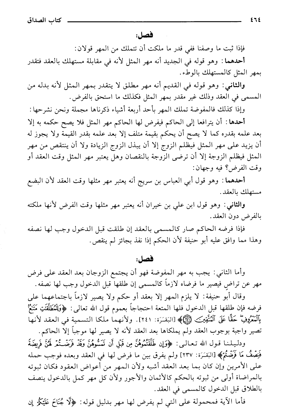 ودليلنا قول الله تعالى:} وَإِنْ طَلَّقْتُمُوهُنَّ مِنْ قَبْلِ أَنْ تَمَسُّوهُنَّ وَقَدْ فَرَضْتُمْ لَهُنَّ فَرِيضَةً فَنِصْفُ مَا فَرَضْتُمْ {[البقرة: 237] ولم يفرق بين ما فرض لها في العقد وبعده فوجب حمله على الأمرين وان كان بما بعد العقد أشبه ولأن المهر من أعواض العقود فكان ثبوته بالمراضاة أولى من ثبوته بالحكم كالأثمان والأجور ولأن كل مهر كمل بالدخول ينصف بالطلاق قبل الدخول كالمسمى في العقد.