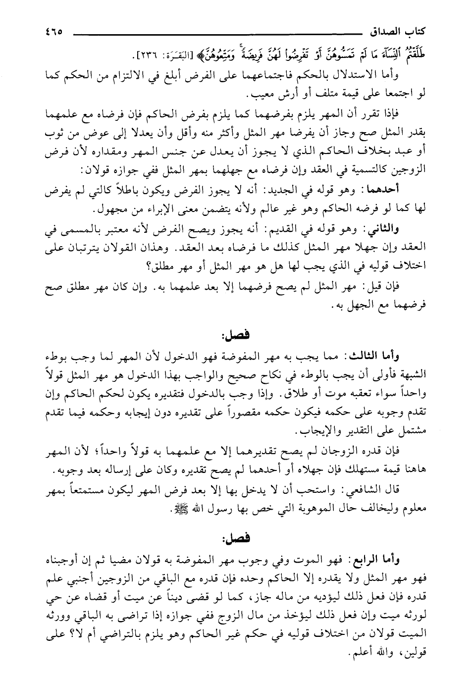 والثاني: وهو قوله في القديم: أنه يجوز ويصح الفرض لأنه معتبر بالمسمى في العقد وان جهلا مهر المثل كذلك ما فرضاه بعد العقد. وهذان القولان يترتبان على اختلاف قوليه في الذي يجب لها هل هو مهر المثل أو مهر مطلق؟
