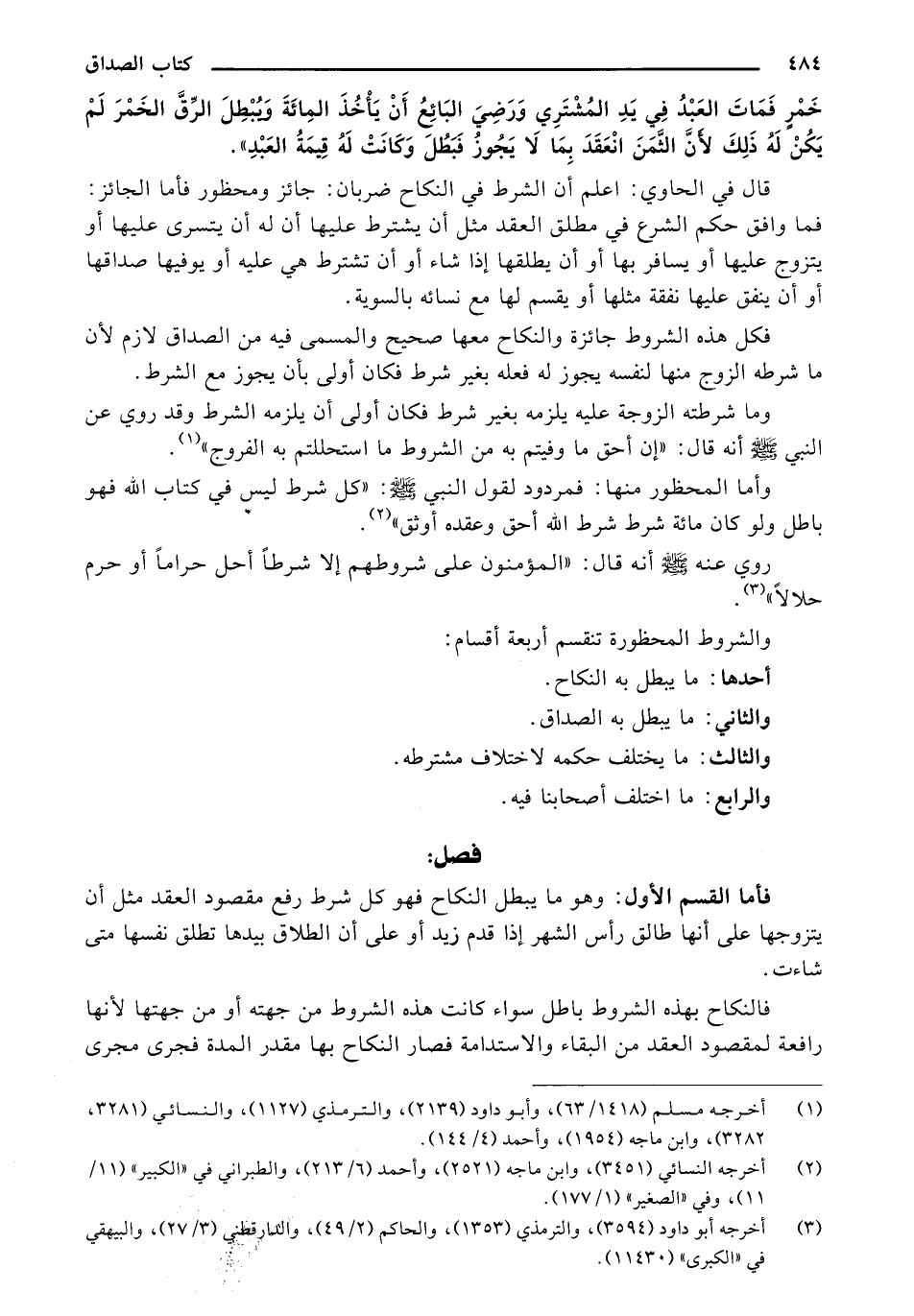 والشروط المحظورة تنقسم أربعة أقسام: