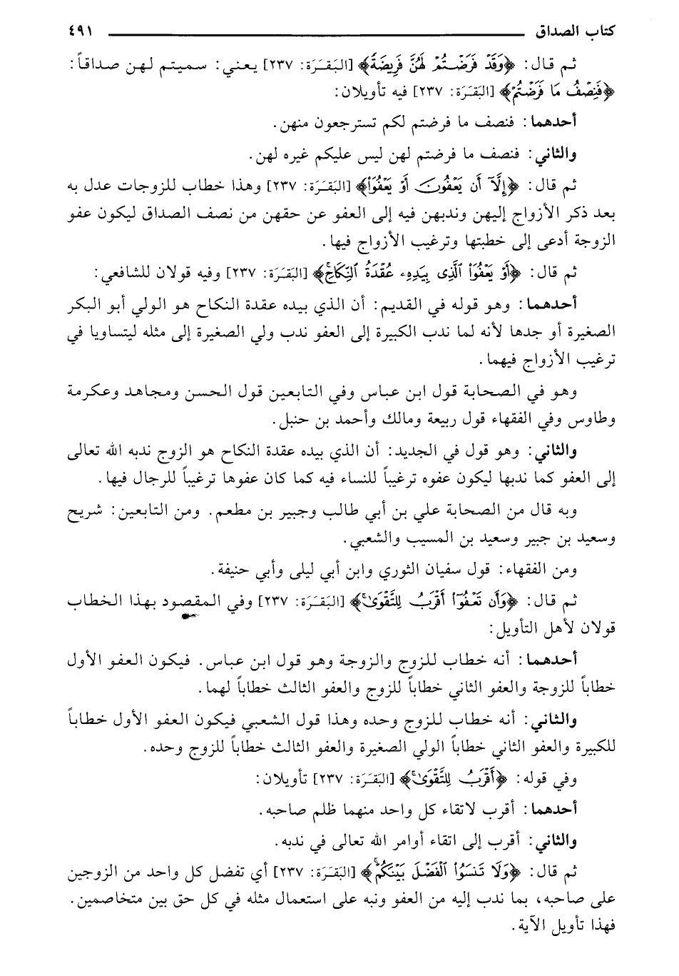 والثاني: أنه خطاب للزوج وحده وهذا قول الشعبي فيكون العفو الأول خطابًا للكبيرة والعفو الثاني خطابًا الولي الصغيرة والعفو الثالث خطابًا للزوج وحده.