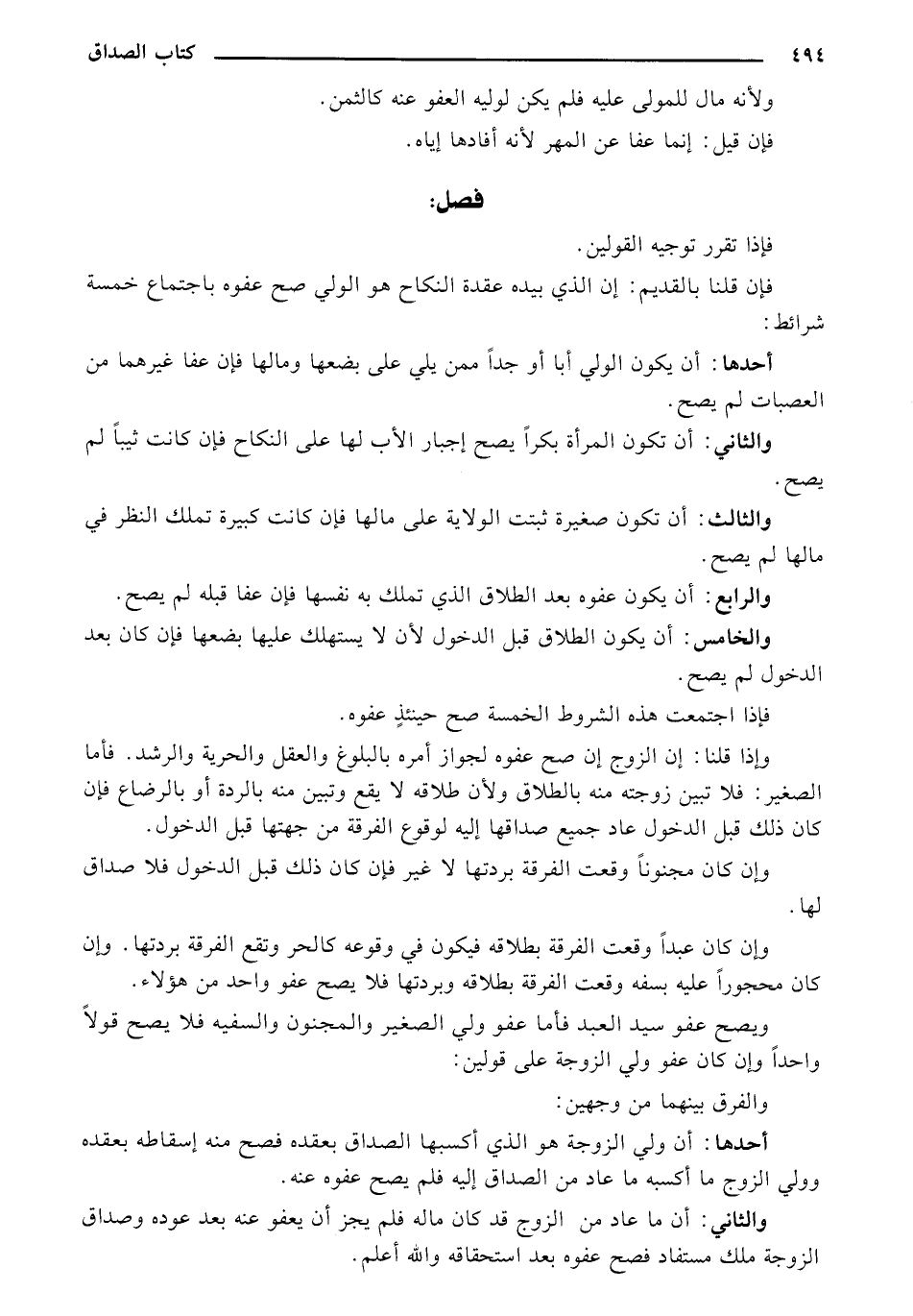 والثاني: أن ما عاد من الزوج قد كان ماله فلم يجز أن يعفو عنه بعد عوده وصداق الزوجة ملك مستفاد فصح عفوه بعد استحقاقه والله أعلم.