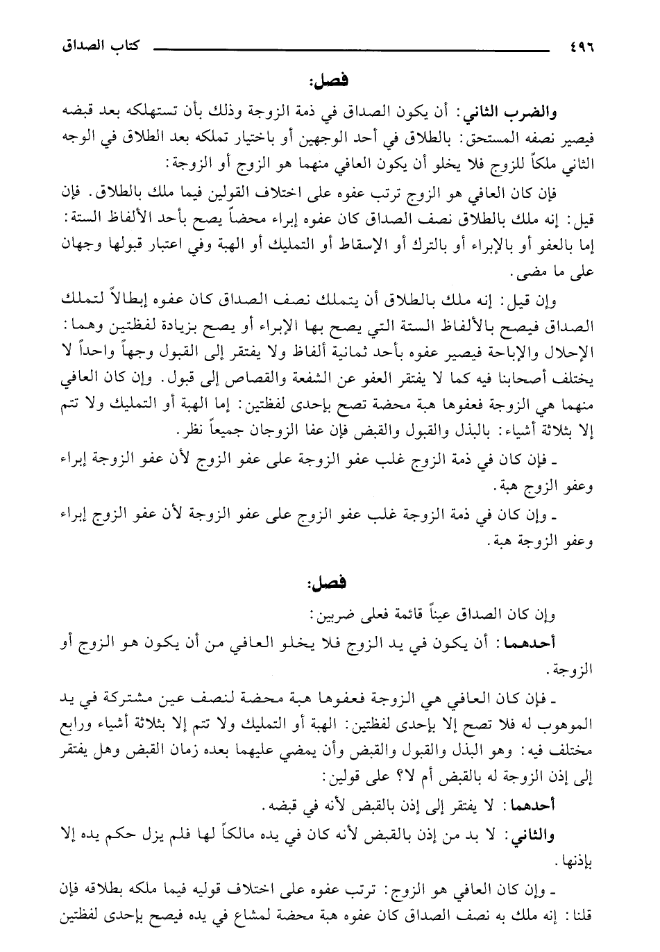 - وإن كان في ذمة الزوجة غلب عفو الزوج على عفو الزوجة لأن عضو الزوج إبراء وعفو الزوجة هبة.