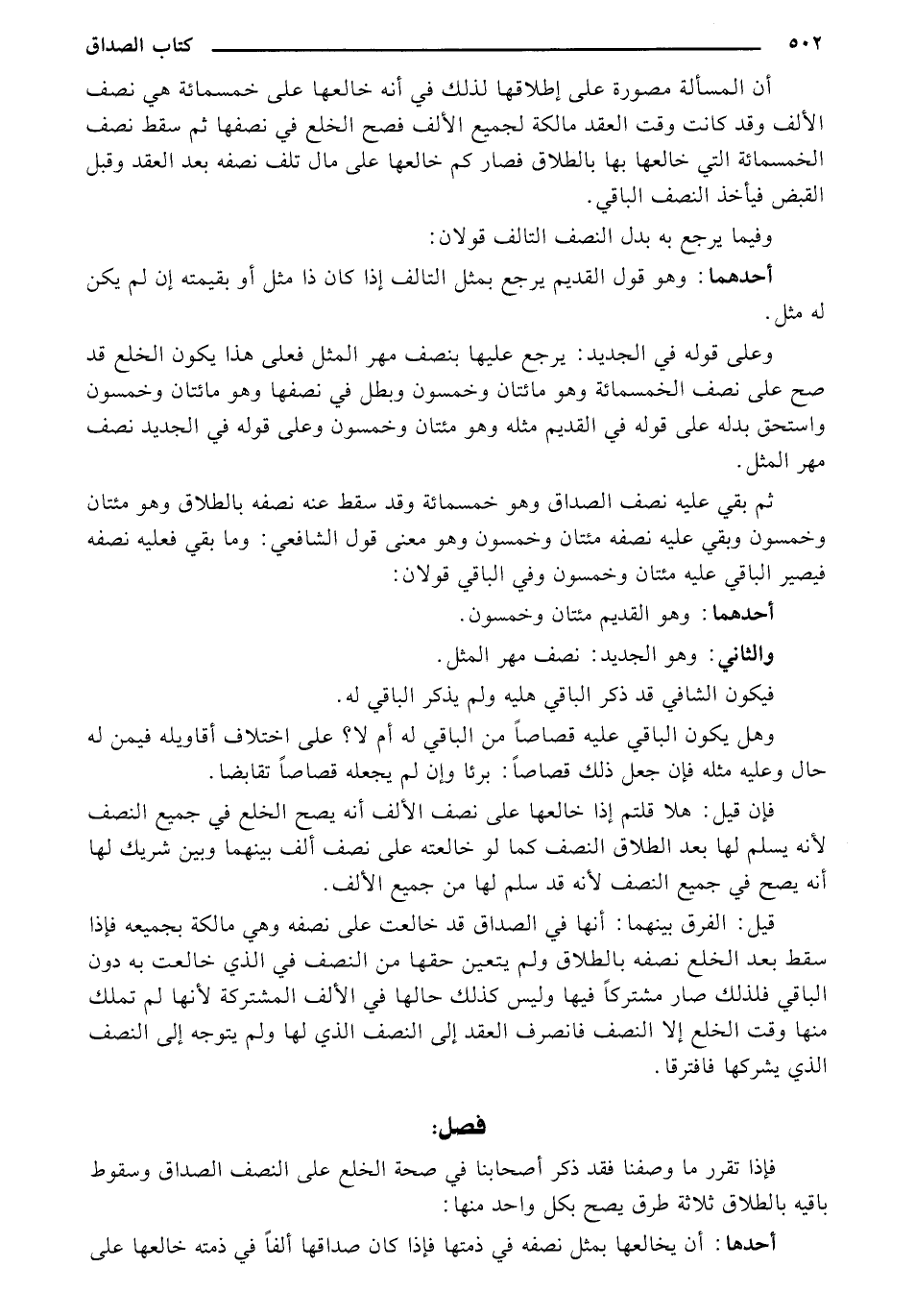 وعلى قوله في الجديد: يرجع عليها بنصف مهر المثل فعلى هذا يكون الخلع قد صح على نصف الخمسمائة وهو مائتان وخمسون وبطل في نصفها وهو مائتان وخمسون واستحق بدله على قوله في القديم مثله وهو مائتان وخمسون, وعلى قوله في الجديد نصف مهر المثل.