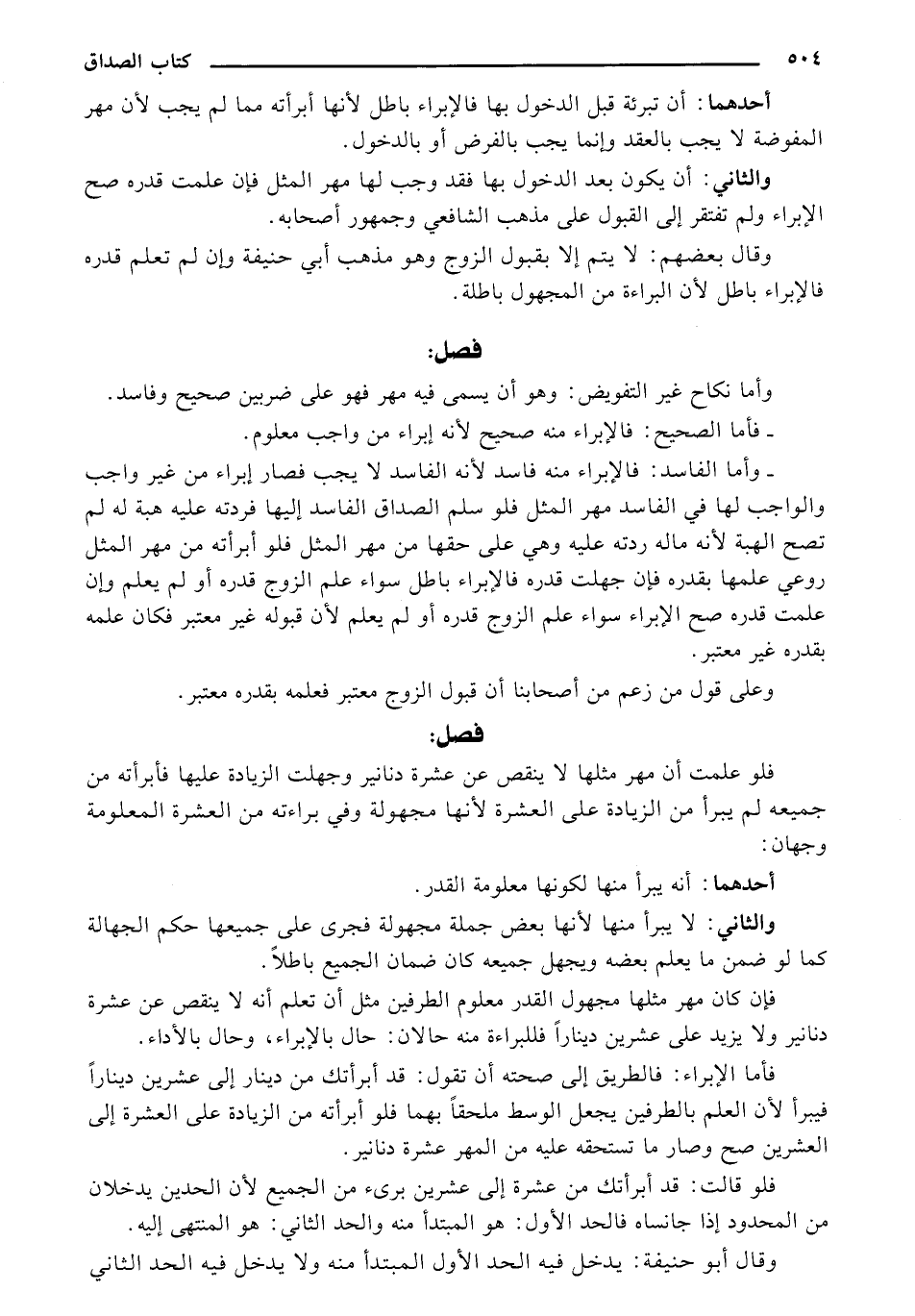 - وأما الفاسد: فالإبراء منه فاسد لأنه الفاسد لا يجب فصار إبراء من غير واجب والواجب لها في الفاسد مهر المثل فلو سلم الصداق الفاسد إليها فردته عليه هبة له لم تصح الهبة لأنه مال ردته عليه وهي على حقها من مهر المثل فلو أبرأته من مهر المثل روعي علمها بقدره فإن جهلت قدره فالإبراء باطل سواء علم الزوج قدره أو لم يعلم وإن علمت قدره صح الإبراء سواء علم الزوج قدره أو لم يعلم لأن قبوله غير معتبر فكان علمه بقدره غير معتبر.
