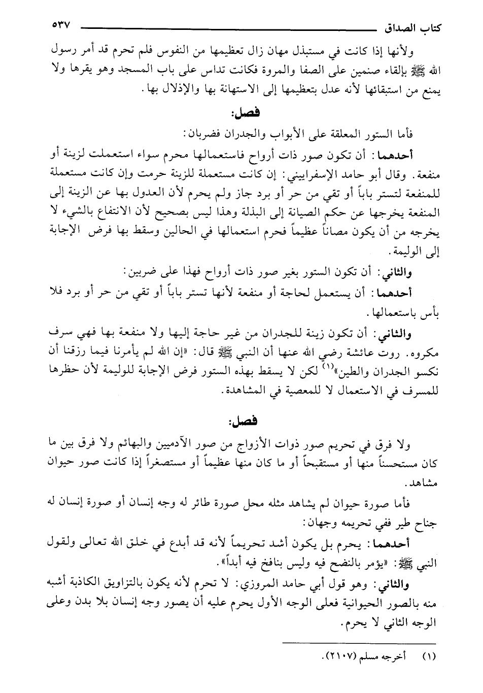 ولا فرق في تحريم صور ذوات الأزواج من صور الآدميين والبهائم ولا فرق بين ما كان مستحسنا منها أو مستحسنا أو ما كان منها عظيما أو مستصغرا إذا كانت صور حيوان مشاهد.