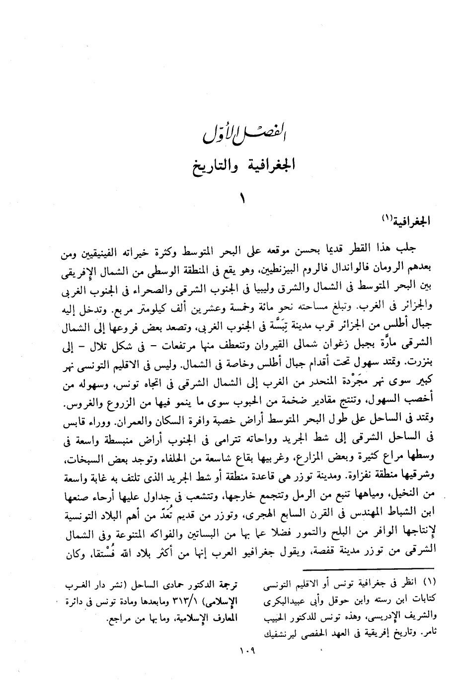 (¬1) انظر فى جغرافية تونس أو الاقليم التونسى كتابات ابن رسته وابن حوقل وأبى عبيد البكرى والشريف الإدريسى، وهذه تونس للدكتور الحبيب ثامر. وتاريخ إفريقية فى العهد الحفصى ليرنشفيك ترجمة الدكتور حمادى الساحل (نشر دار الغرب الإسلامى) 1/ 313 وما بعدها ومادة تونس فى دائرة المعارف الإسلامية، وما بها من مراجع.